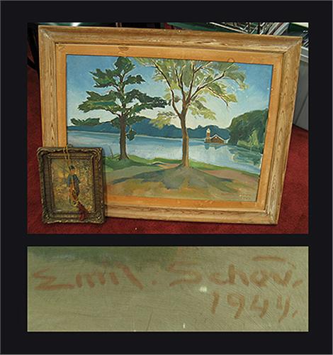 Emil Schon painting on board signed and dated "Emil Schon 1944" measures 34" x 26" and a smaller print.