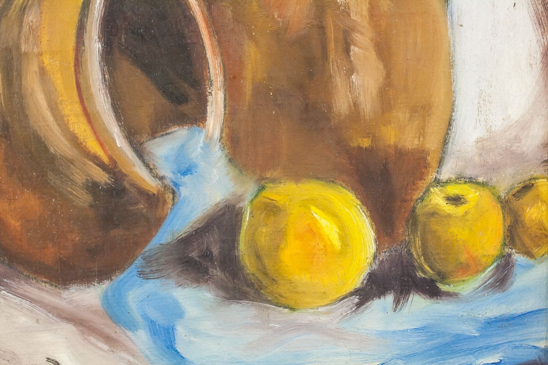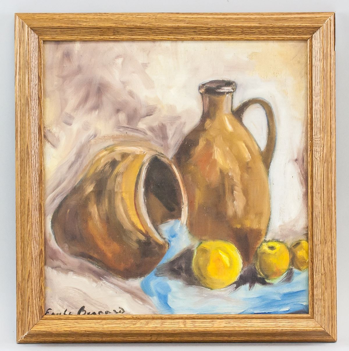 Oil on canvas, framed. Featuring still-life of two pitchers and fruit. Signed "Emily Bernard" in the bottom left corner. Attributed to Emile Bernard (1868-1941, French). 30 x 31 cm (11 x 11.5 in), Frame: 38 x 39 cm (15 x 15.25 in). Provenance: This lot carries limited provenance from a Southern Ontario estate