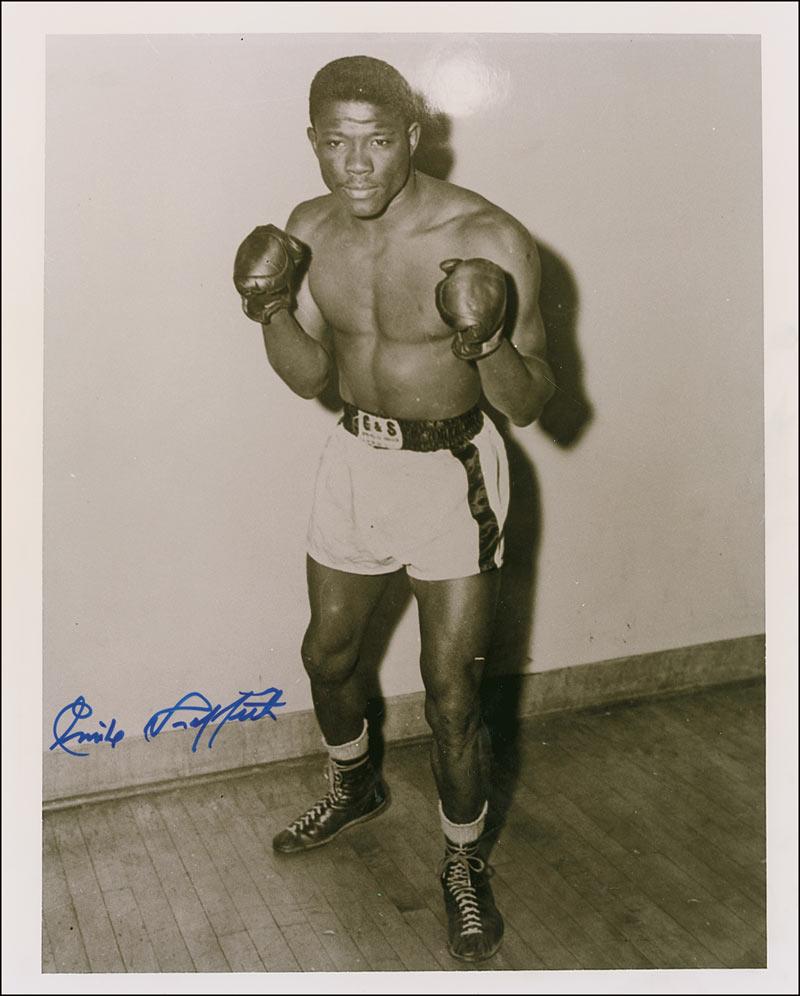 Glossy 8 x 10 full-length photo of Griffith in his prime, signed in blue felt tip. In fine condition.