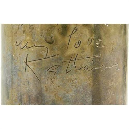 <B>Katharine Hepburn Inscribed Pepper Grinder.</B></I> A 4" silver pepper grinder inscribed to the make-up artist Emile LaVigne from his friend, actress Katharine Hepburn. In Fine to Very Fine condition with some heavy tarnishing. <I> From the Estate of Emile LaVigne.</B></I><BR><BR><b>Shipping:</b> Miscellaneous Collectibles, Smal (<a target="_blank" href="http://www.heritageauctions.com/common/shipping.php">view shipping information</a>)