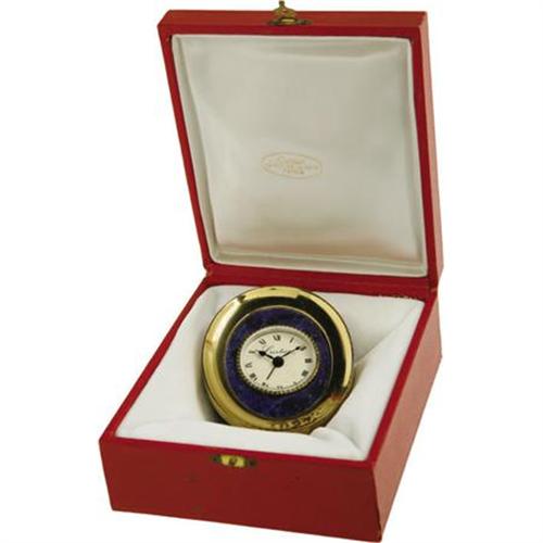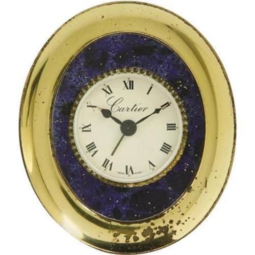 <B>Emile LaVigne's Clock from Lillian Gish.</B></I> A faux Cartier gold-tone table clock with blue enamel, 2.75" x 3", given to LaVigne by his good friend, actress Lillian Gish as a joke. The clock is not currently in working order, but otherwise is in Very Fine condition with some small areas of wear to the finish, and is accompanied by its original presentation box. <I> From the Estate of Emile LaVigne.</B></I><BR><BR><b>Shipping:</b> Miscellaneous Collectibles, Smal (<a target="_blank" href="http://www.heritageauctions.com/common/shipping.php">view shipping information</a>)