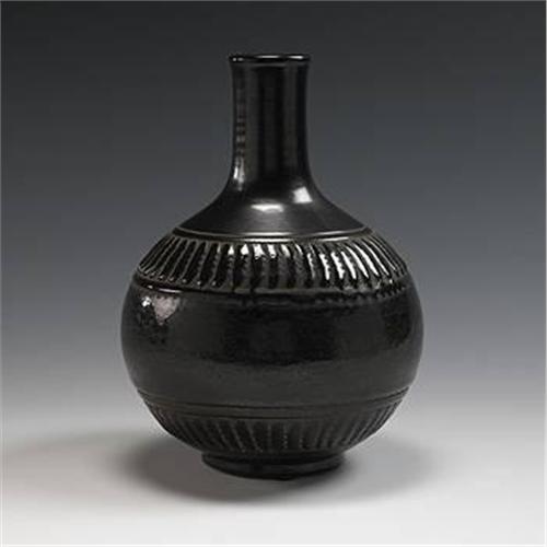 Emile Lenoble vase France, c. 1925 glazed and carved stoneware 8 dia x 11.5 h inches Signed with impressed artist's cipher to underside.