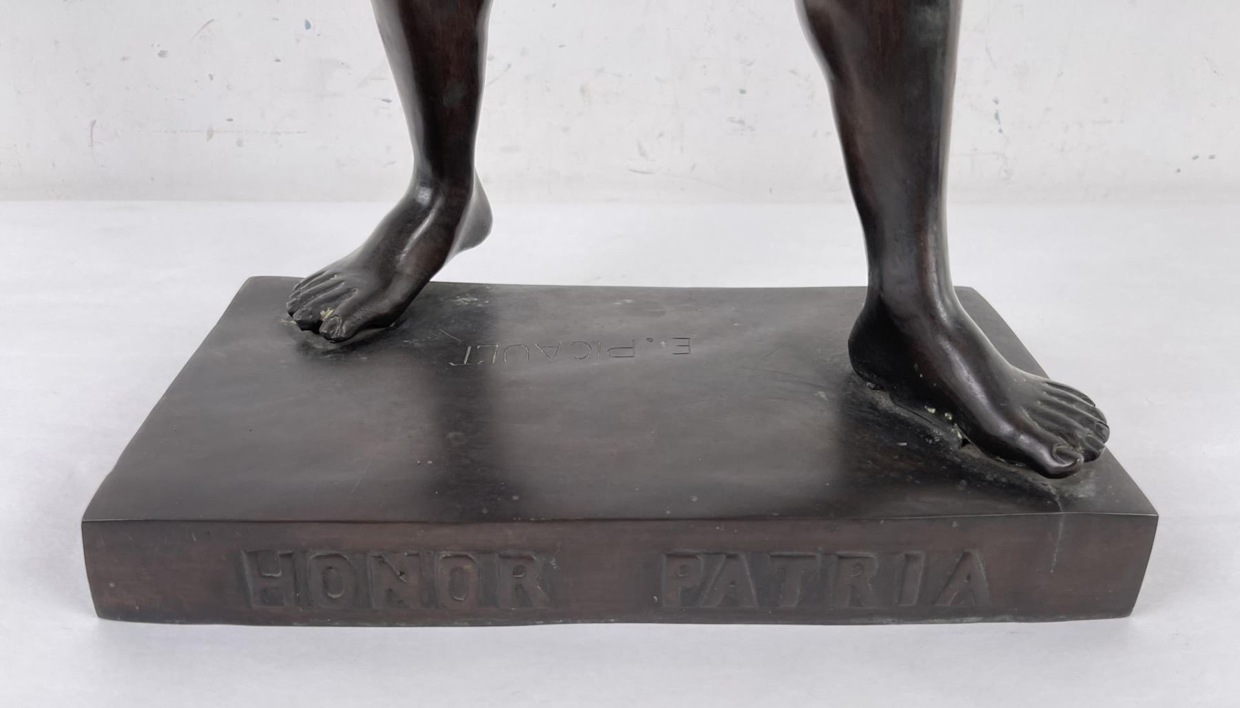 31 1/2" tall, 16" long, 13" wide. Emile Louis Picault (1833 - 1915) was active/lived in France. Emile Picault is known for Allegory, mythology and patriotic subject sculpture.