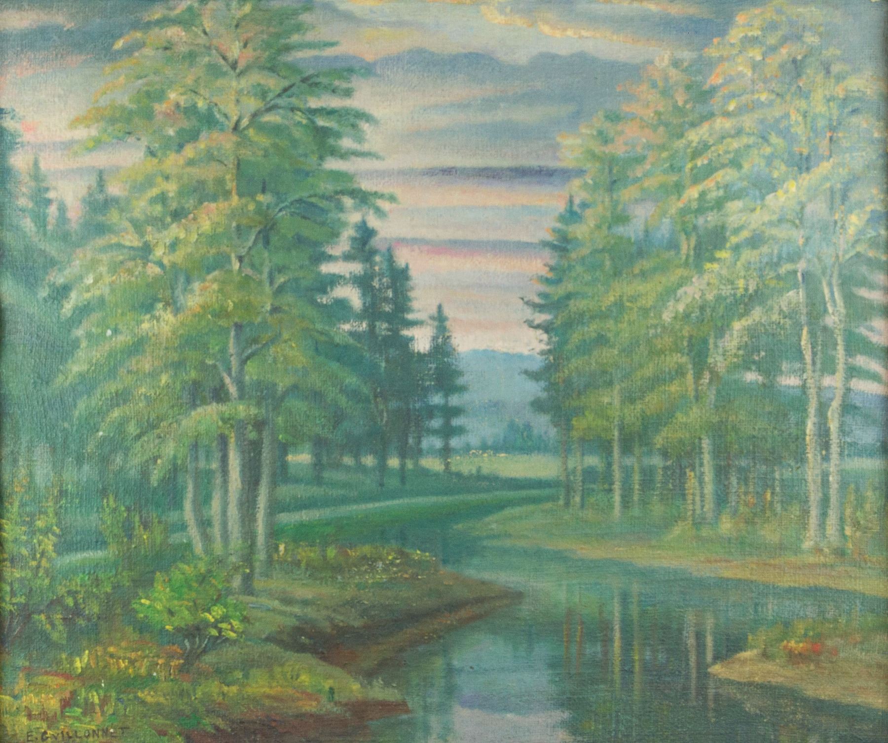 Landscape; oil on board with frame; signed E. Guillonnet on lower left corner; 65 cm × 55 cm