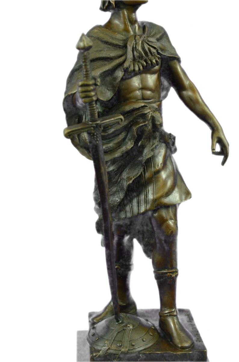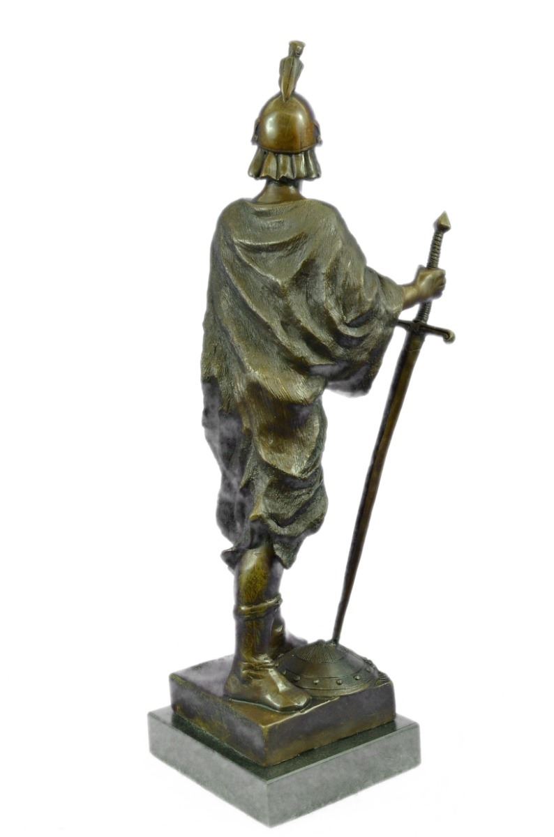Emile Louis Picault (French, 1839 To 1915), A Bronze Figure Of A Warrior/Le Devoir, The Helmeted Figure Standing Over A Fallen Shield, This Magnificent Sculpture Was Cast Using The Archaic Method Of Lost-Wax Casting And Stained With A Brown Patina Finish For Preservation. The Sculpture Is Mounted Upon A Black Marble Base. Bronze Dimensions With Marble Base: Height 18 X Width 7 inches. Weight: 12 Lbs. This Is Not An Original Of His Work But A Recent Reproduction.
