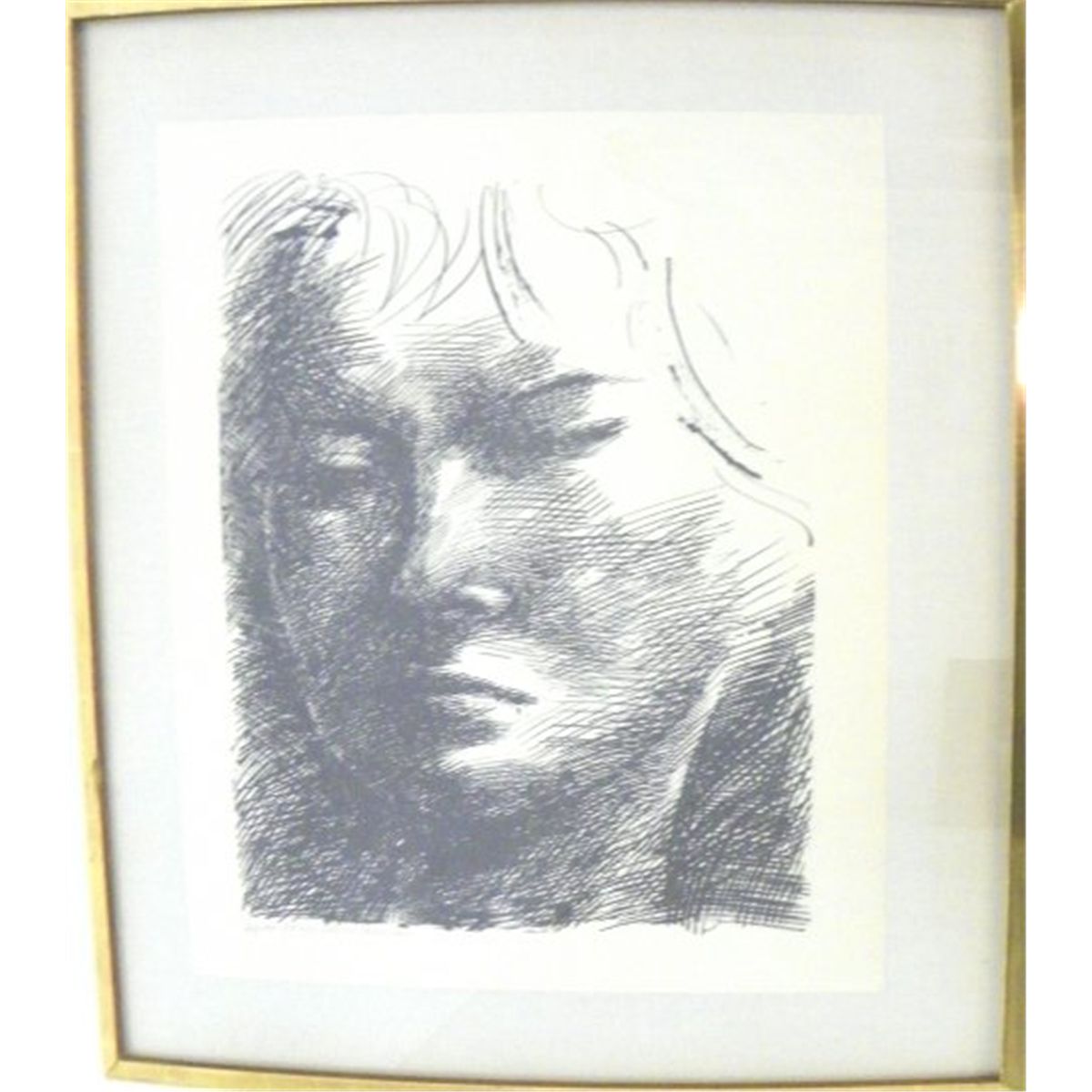 Emilio Greco (1913-1995 Italy) Female Head, etching, 22" x 17 1/2", signed, dated 1955 Roma, numbered 63/150 lower left, framed 29" x 24" Please read our terms of sale.