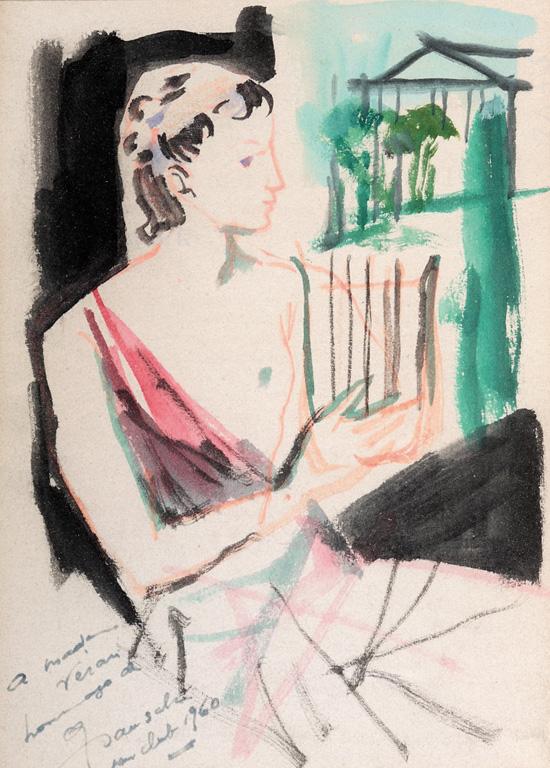 Emilio Grau-Sala, Spanish Art, 1911 - 1975, Orpheus, 1960, Watercolor, 19x13.5cm, Signed, dated and dedicated., , , , ,