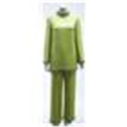 This groovy Emilio Pucci chartreuse crepe jewel-trimmed tunic and pants set consists of a silk long sleeve top with high collar and longer silhouette, matching wide-legged slacks, both with large beveled rhinestones and crystals (really substantial stones )at the edges. Size 8, labeled "Emilio Pucci / Florence - Italy / 100% Pure Silk" etc. There are some losses of the jewels, and there are some small pin holes on the tunic from brooch use. Some seams have been repaired, but it is still a very stunning suit.Please feel free to ask for additional photos. Keep checking for other vintage wardrobe items, added daily. Free shipping and insurance within the US.