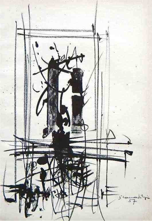 Emilio Scanavino Original Lithograph. Executed For The Second Volume (1956-57) Of Very Rare Documenti D'arte D'oggi, Published In Milan By Groupe Espace. The Total Sheet Measures 12 1/2 X 8 1/2 Inches (318 X 220mm). Printed On Smooth Wove Paper- Professionally Framed & Matted - Comes With Certificate - -