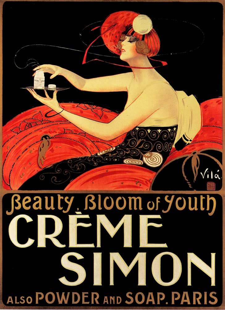 Artist: Emilio Vila - Title: Cr�me Simon - Medium: Fine Art Reproduction Giclee on Canvas - Image Size: Approximately 20 inches x 14.5 inches - Framed: Unframed on Unstretched Canvas - Emilio Vila (1887-1967) was a Spanish artist and poster illustrator born in a small village in Catalonia called Llagostera. He studied in Llagostera for some years, and later in Barcelona. Because of the Spanish Civil War, he had to move to France (artists were not well seen), where he worked as a painter and poster illustrator. He also painted portraits. In Paris, he knew painters such as Toulouse-Lautrec and Picasso
