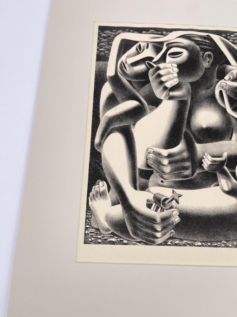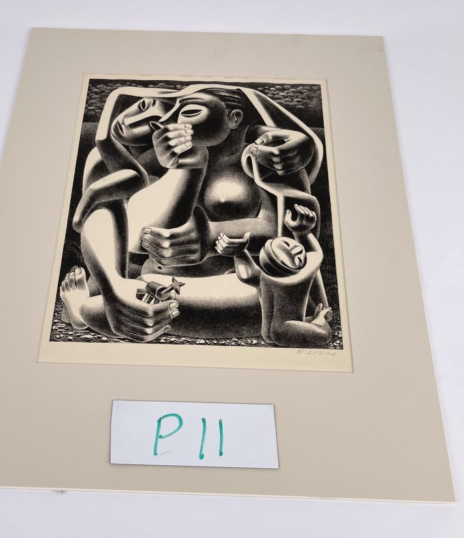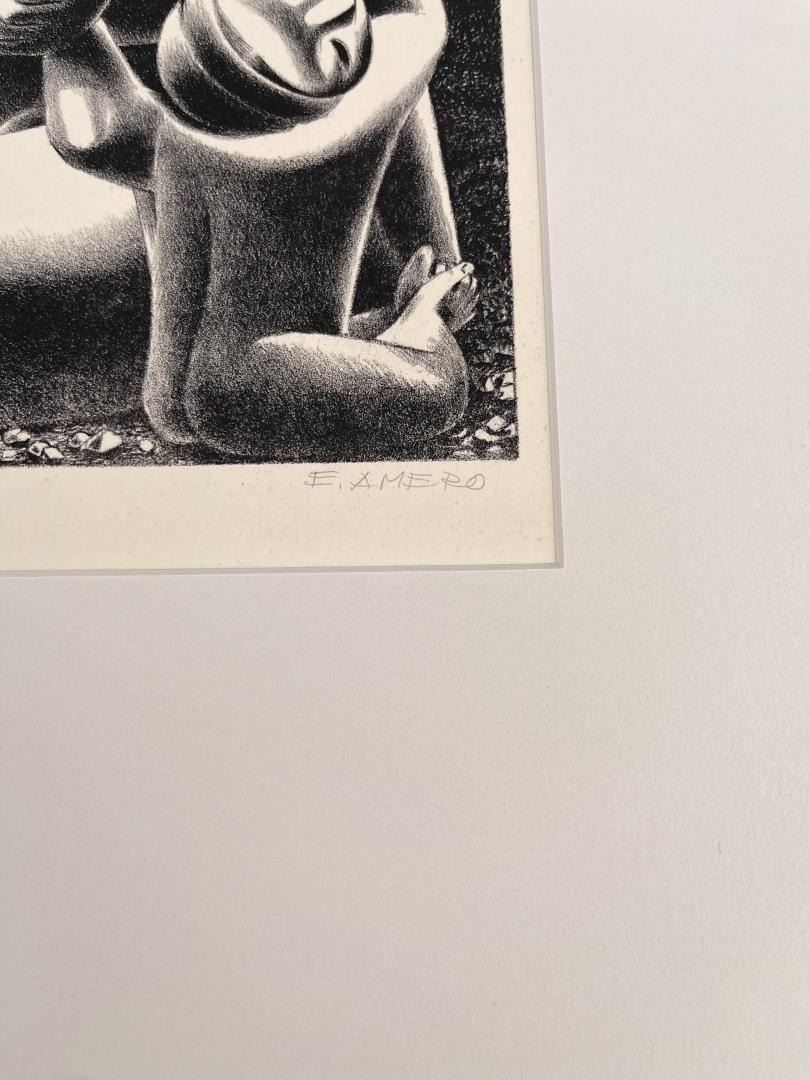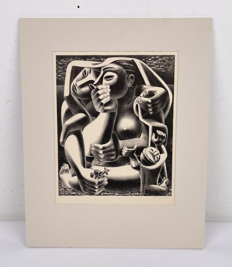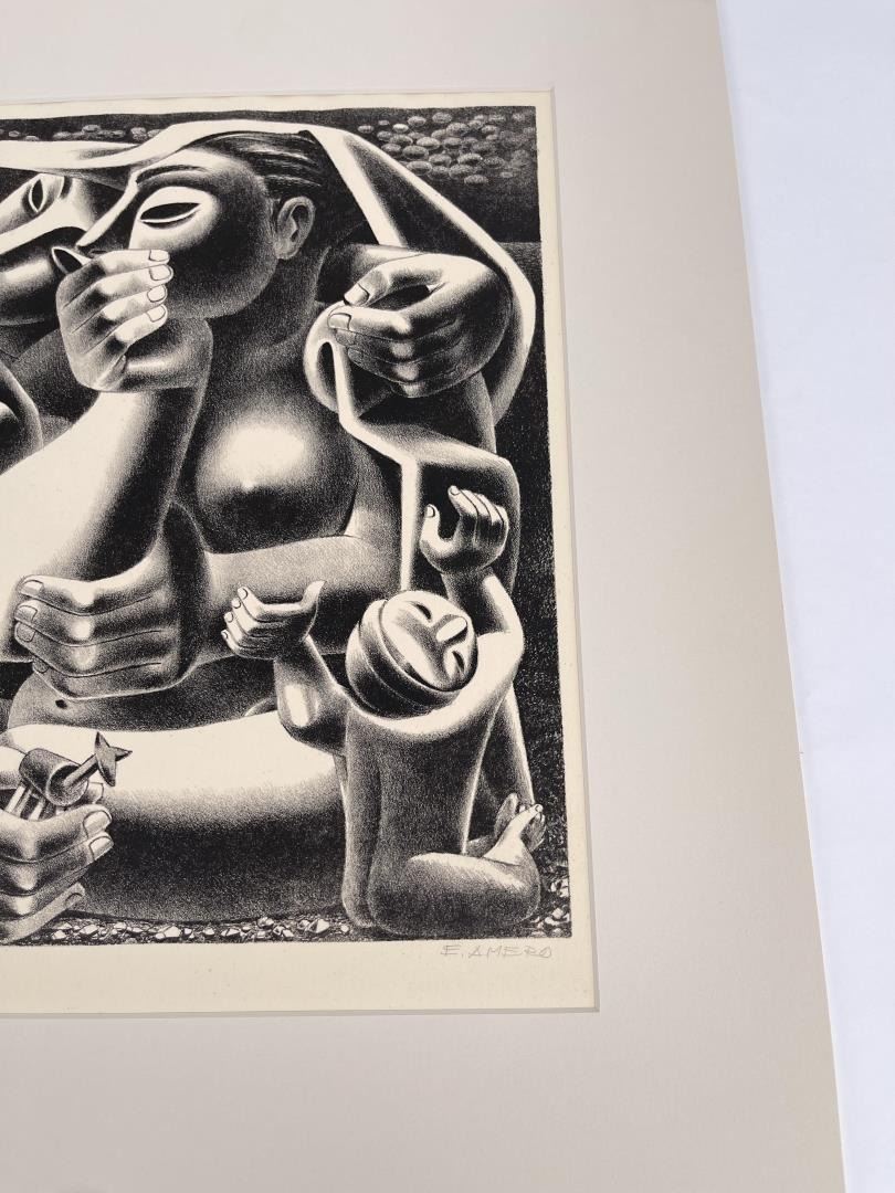 Title of the work is Where? (Donde?). 1950. Signed as shown. 16 1/4" by 20 1/4" on matte.