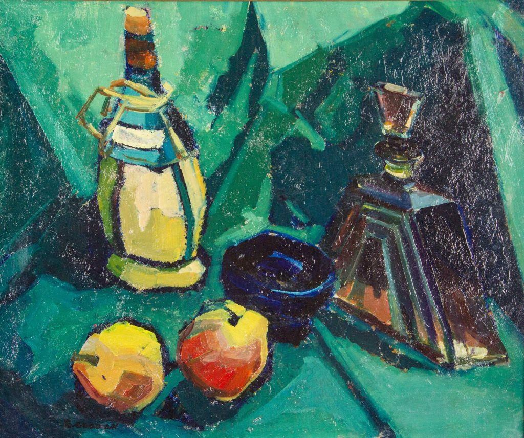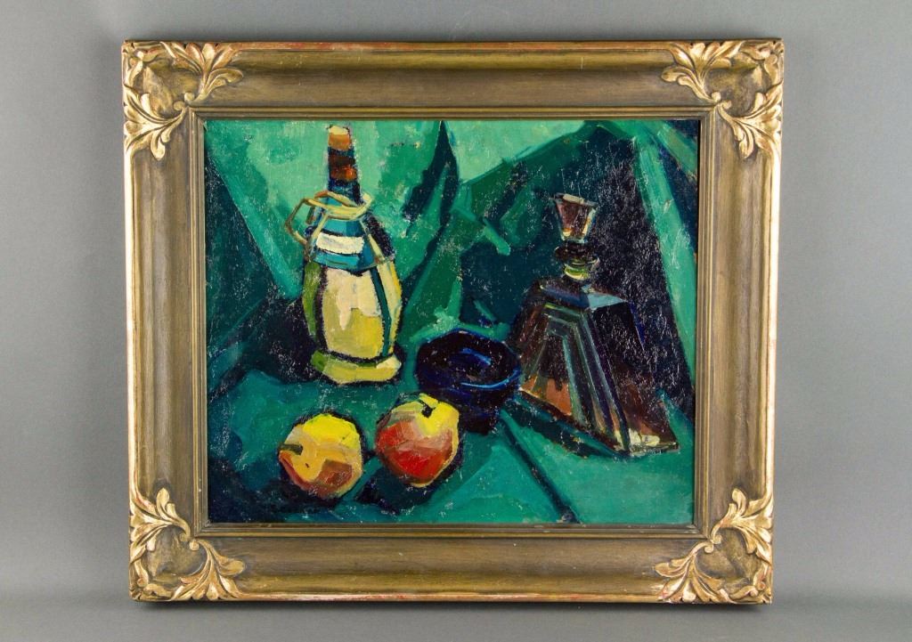 Painting of still life; oil on board; framed; signed Emily Coonan (1855-1971), Canadian painter, member of the Beaver Hall Group; dated 1940; 15 Inches x 18 Inches