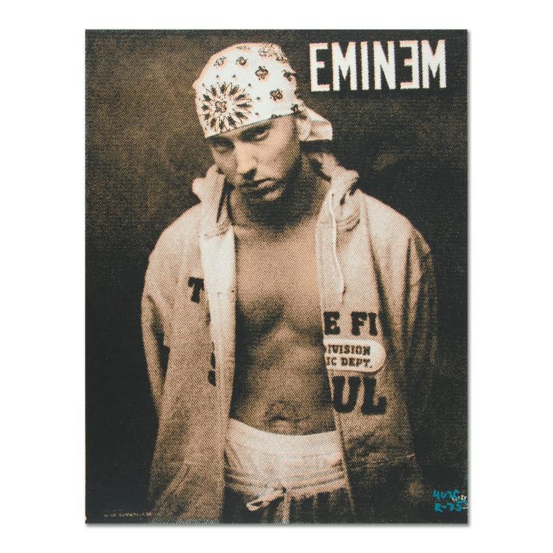 "Eminem" is a one-of-a-kind hand-pulled silkscreen on canvas by Ringo (Daniel Funes) - protege of Andy Warhol's apprentice, Steve Kaufman. This piece is hand signed by the artist and Includes Certificate of Authenticity. This piece comes from the Andy Warhol Legacy Series. Due to the nature of the canvas these, pieces will need to be mounted for framing. Measures approx. 12" x 16" (image).
