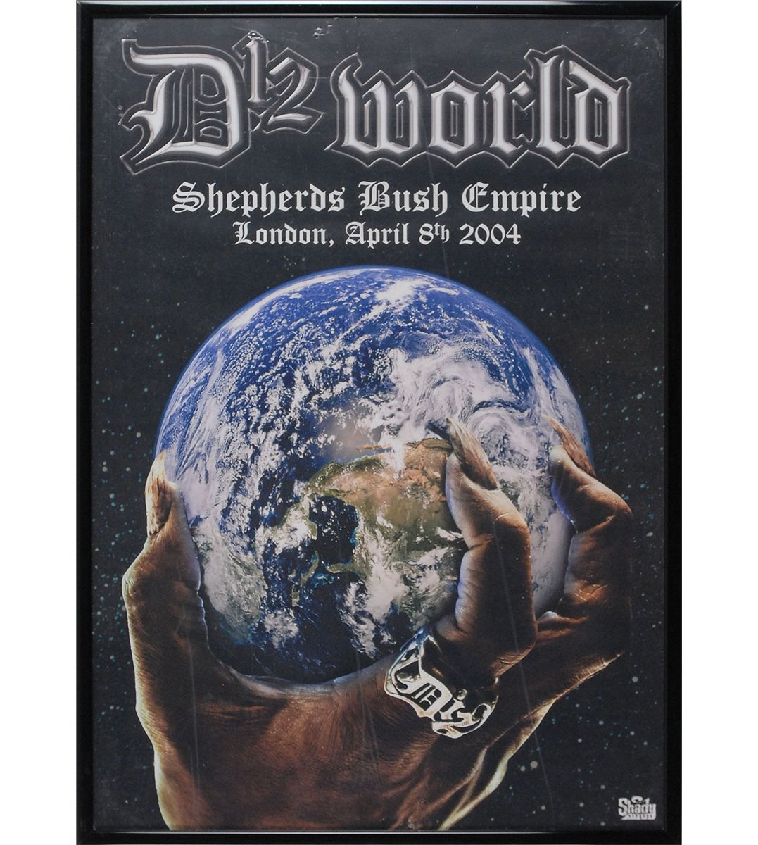 Color 11.5 x 16.5 poster for his April 8, 2004, concert in London as the Shepherd’s Bush Empire on his D12 world tour. Framed to an overall size of 12 x 17. Poster appears to be laminated. In fine condition, with some bubbling to laminate.