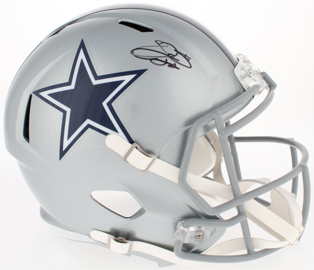 Dallas Cowboys full-size replica speed helmet has been hand-signed in black felt-tip pen by Emmitt Smith (HOF).