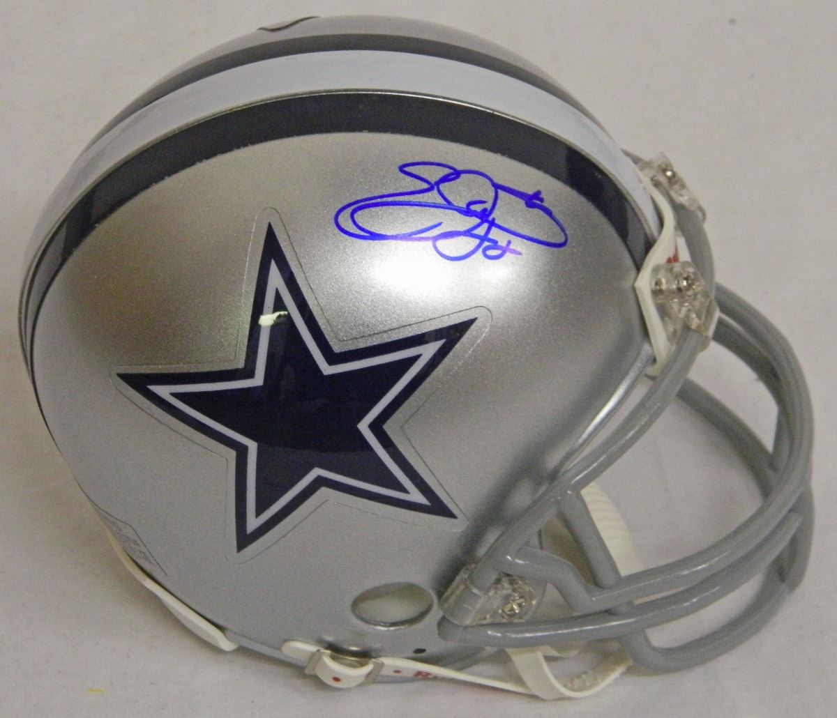 Emmitt Smith signed Dallas Cowboys Riddell replica mini helmet. Item comes with the Emmitt Smith Hologram as well as a Schwartz Sports Memorabilia tamper-proof numbered hologram and Certificate of Authenticity which can be verified online.
