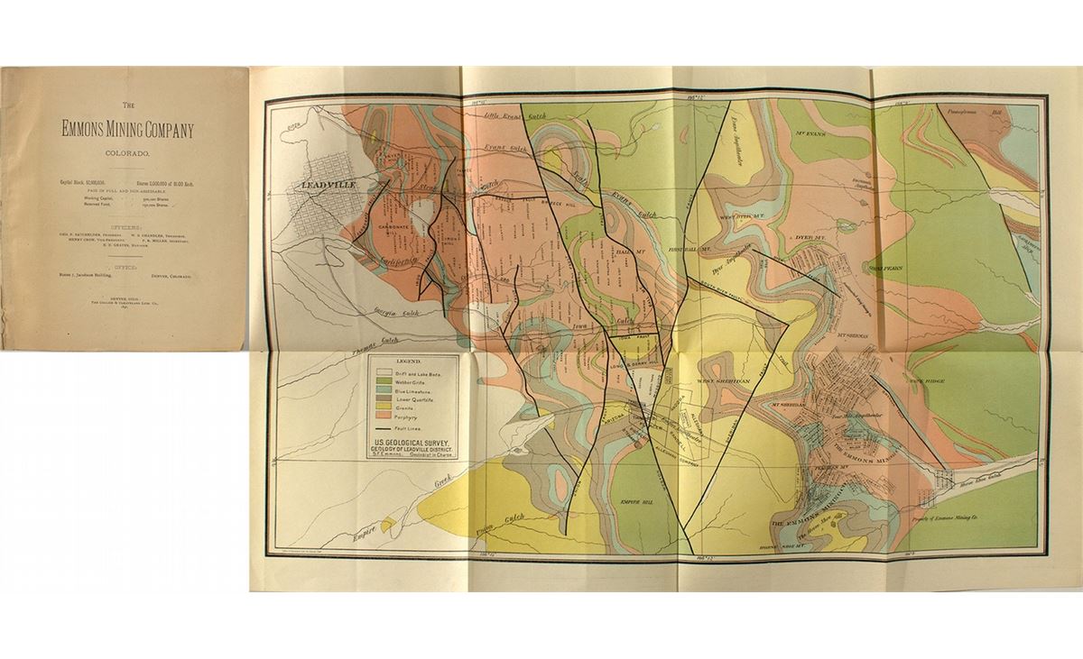 Leadville, Colorado. 16 pages. One double page map and one 21 x 13" fold out color map. Named after famous USGS geologist who wrote "The Geology of Leadville" in 1883.