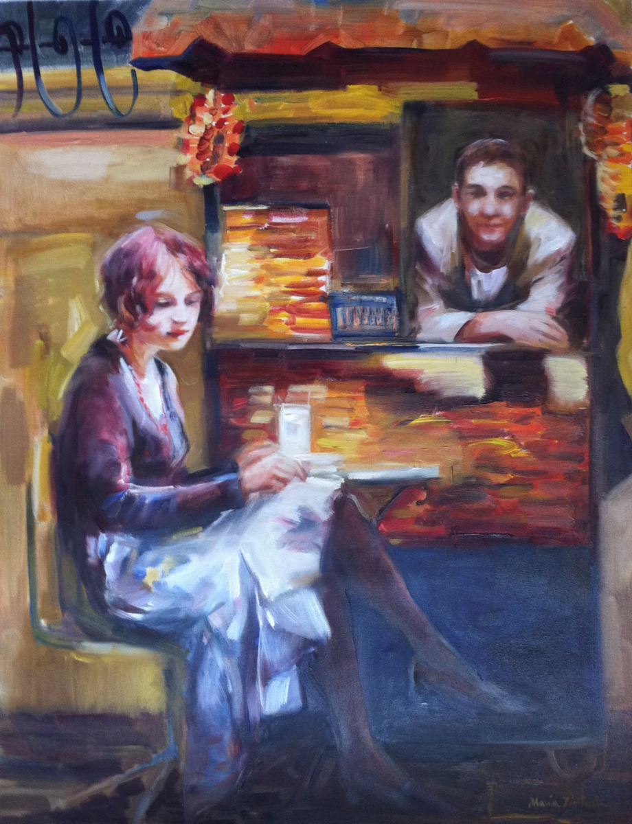 This colorful original oil painting was created by Maria Zielinska, from sketches she made while traveling in Europe. The canvas is stretched 26x20", ready to frame.