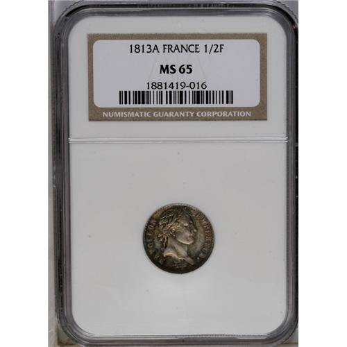 Emperor Napoleon 1/2 Franc 1813-A, KM691.1, MS65 NGC, l