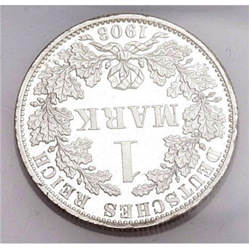 <B>Empire. 1 Mark 1903A, </B></I>KM14, Choice Proof with deep cameo devices and a light coat of lacquer which has protected it for 100+years. A scarce date in uncirculated.