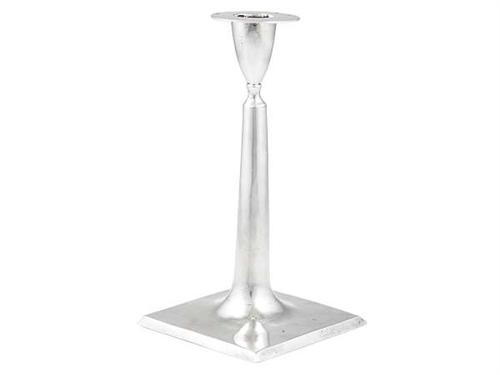 Silver, 196 g. Angular shape base, plain tapering stem with elegant candle cup. Marked: between 1806and 1807 with re-stamping from Lemberg. Size: 18 cm