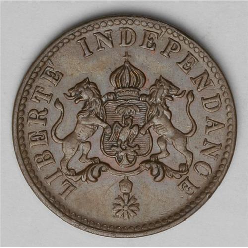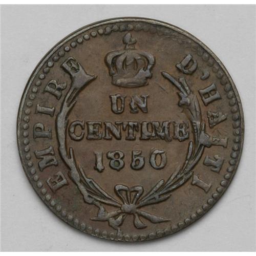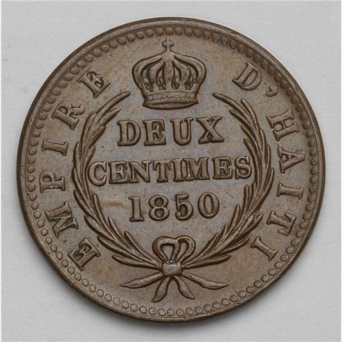 <B>Empire - Faustin I - Pair of Copper Types, </B></I>KM34 Centime 1850, nice brown XF, and KM36 2 Centimes 1850, choice brown AU, rare grade.