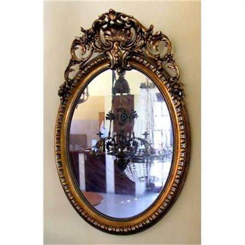 <tr><td>Title:Empire French Oval carved wood mirror </td></tr>