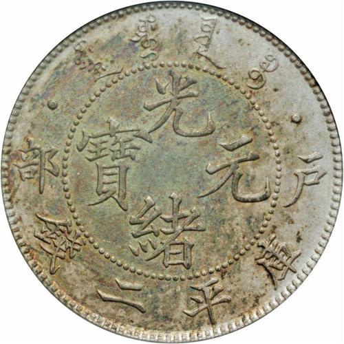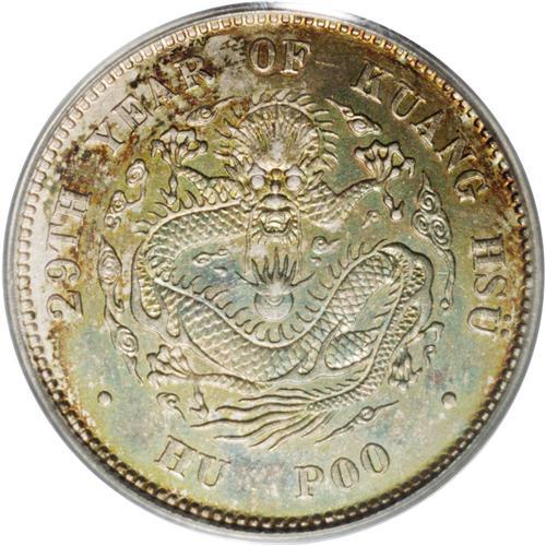 <B>Empire. Hu-Poo Pattern 2 Mace Year 29 (1903),</B></I> KM-Pn292, Kann-929, Ma-3, MS62 PCGS. Well struck with mottled gray, blue, and russet toning. This coin is most often encountered as a modern strike and counterfeit. Very rare. <BR><BR><B>Imp