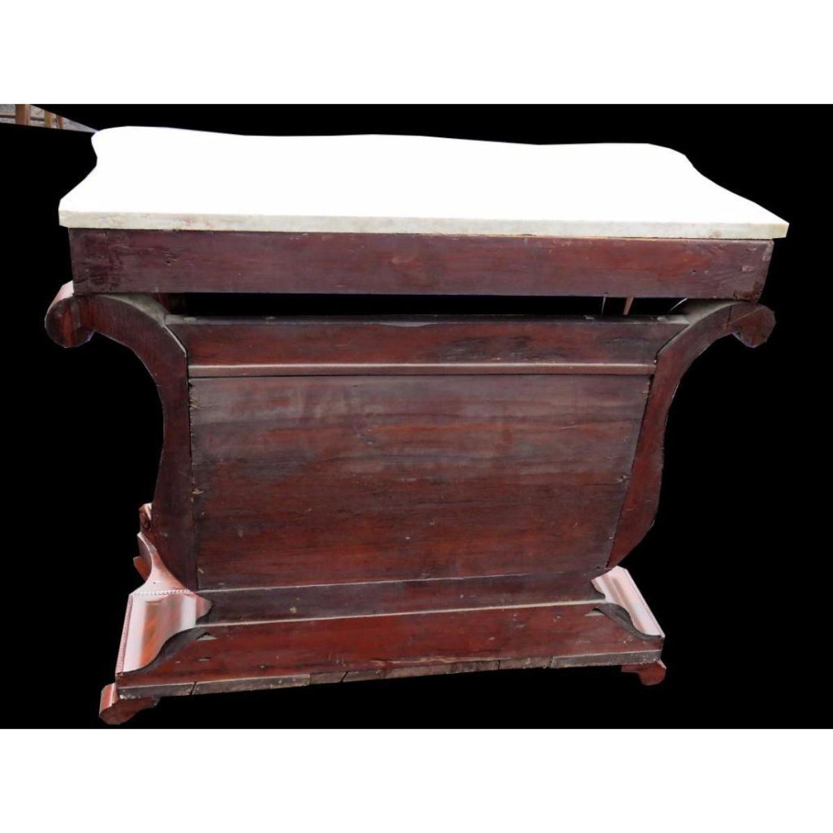Mahogany frame. Marble top. Mirrored back. 33 1/4"h. x 36 1/2"w. x 16 1/4"d.CONDITION Good condition. Light wear.