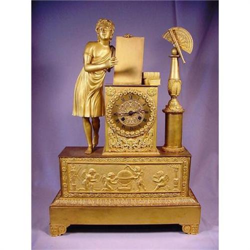 <table width="100%" border="0" cellspacing="0" cellpadding="4"><tr><td><em> </em></td></tr><tr> <td width="100%"> Beautiful circa 1800 mercury gilt bronze astronomer's clock. The clock has its original key and pendulum. The bottom of the clock has 4 high relief sculptured cherubs. One of the cherubs is measuring and doing calculations. The other cherubs are participating in similar astronomical tasks. The clock is extremely ornate and beautiful. The quality is superb and the condition excellent. Height 19-1/2 inches, width 13-1/2 inches, depth 4-1/2 inches </td></tr><tr> <td> </td></tr><tr> <td>Reference #: 55642</td></tr><tr><td>Condition:Excellent</td></tr><tr><td>Year:C.1800</td></tr><tr><td>Country:France</td></tr><tr><td>Height:19.5</td></tr><tr><td>Depth:4.5</td></tr><tr><td>Width:13.5</td></tr><tr><td>Title:Empire Mercury Gilt Bronze Astronomer Clock </td></tr><tr><td>Location:Los Angeles, California</td></tr></table>