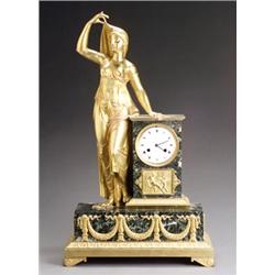 Empire Ormolu and Vert Maurin Marble Figural Mantel Clock