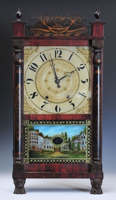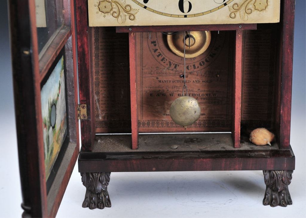 CONDITION REPORT: glass possibly repainted, some lifting to veneer, surface excellent, lacking weights