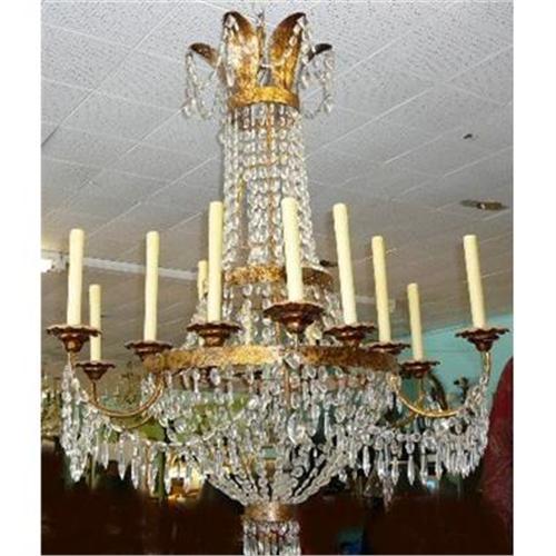 This is a magnificent Empire Style beaded chandelier ceiling fixture with twelve beeswax candlestick lights and a beaded crystal tent, basket and swags. It is wired for USA use and ready to light up your life...a real stunner!!!