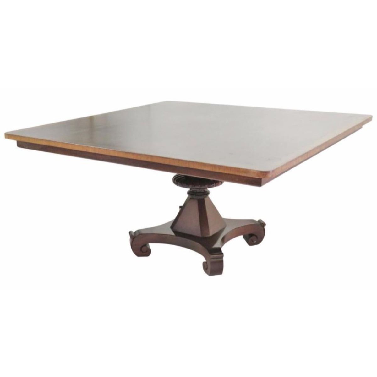 Walnut with a banded top. 30"h. x 60"sq.CONDITION Good condition. Light wear to top.