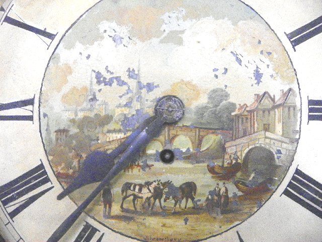 With handpainted face. Glass missing. Approx. 21" x 13.5" Please read our terms of sale.