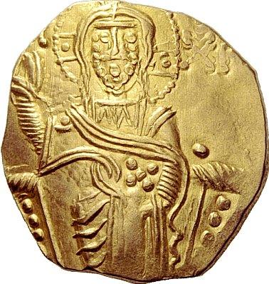The Empire of Nicaea. John III Ducas-Vatazes, 1222 – 1254. Hyperpyron, Magnesia 1232-1254, AV 4.10 g. Christ enthroned facing, with crossed nimbus, wearing pallium and colobium, raising r. hand in benediction and holding Book of Gospels in l.; in upper field, IC – XC; pellet on r. of throne. Rev. [I& DECPOTH T& PORFVROGENNHT&] (some letters visible) Jonh, on l., standing facing and holding labarum, crowned by the Virgin; in upper field, [MHP ligate – QV]. Metcalf, Agrinion Hoard, NC 1980, cf. 215 and pl. 19, 215. DO 6b.7. Sear 2073. Slightly clipped, otherwise good very fine