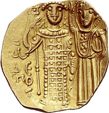 The Empire of Nicaea. John III Ducas-Vatazes, 1222 – 1254. Hyperpyron, Magnesia 1232-1254, AV 4.10 g. Christ enthroned facing, with crossed nimbus, wearing pallium and colobium, raising r. hand in benediction and holding Book of Gospels in l.; in upper field, IC – XC; pellet on r. of throne. Rev. [I& DECPOTH T& PORFVROGENNHT&] (some letters visible) Jonh, on l., standing facing and holding labarum, crowned by the Virgin; in upper field, [MHP ligate – QV]. Metcalf, Agrinion Hoard, NC 1980, cf. 215 and pl. 19, 215. DO 6b.7. Sear 2073. Slightly clipped, otherwise good very fine