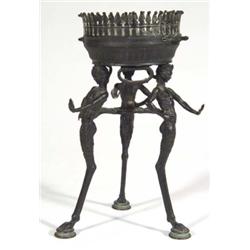 Empire style Victorian bronze table lamp modelled with three figural supports, 22cm high
