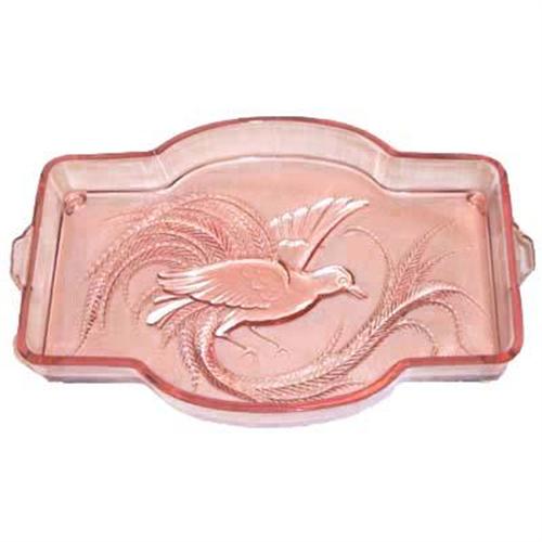 <tr><td>Title:Empress Bird Pink Pressed Glass Vanity Tray</td></tr>