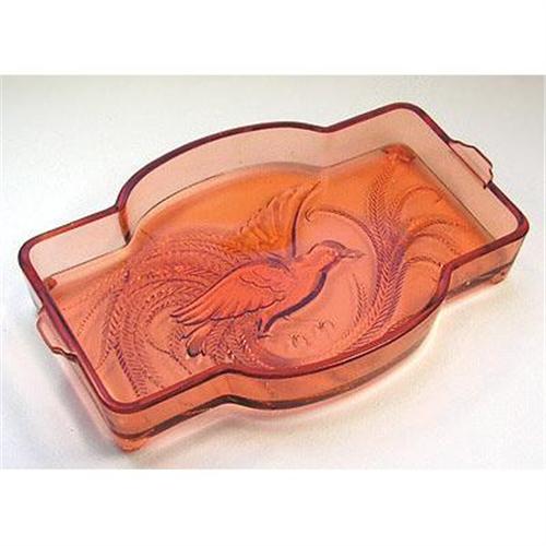 <tr><td>Title:Empress Bird Pink Pressed Glass Vanity Tray</td></tr>