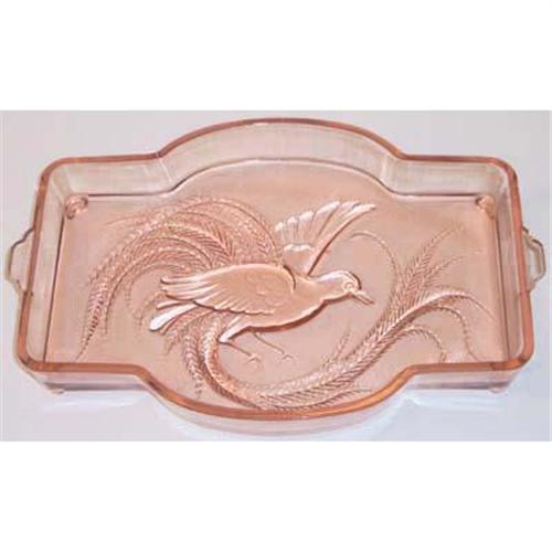 <tr><td>Title:Empress Bird Pink Pressed Glass Vanity Tray</td></tr>