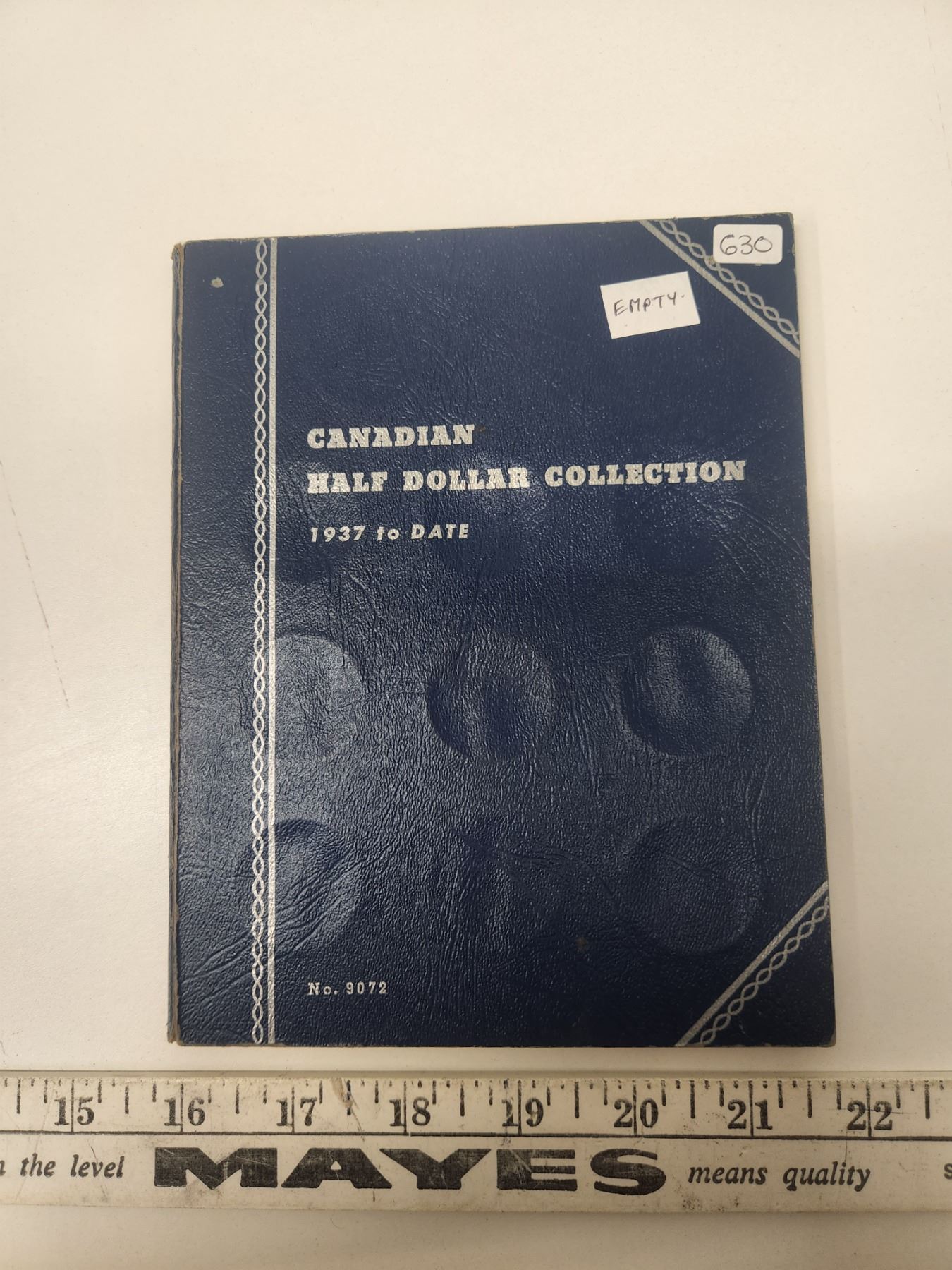 Empty Canadian 50 Cents blue Whitman folder for half dollars dated 1937 to 1960. Used.