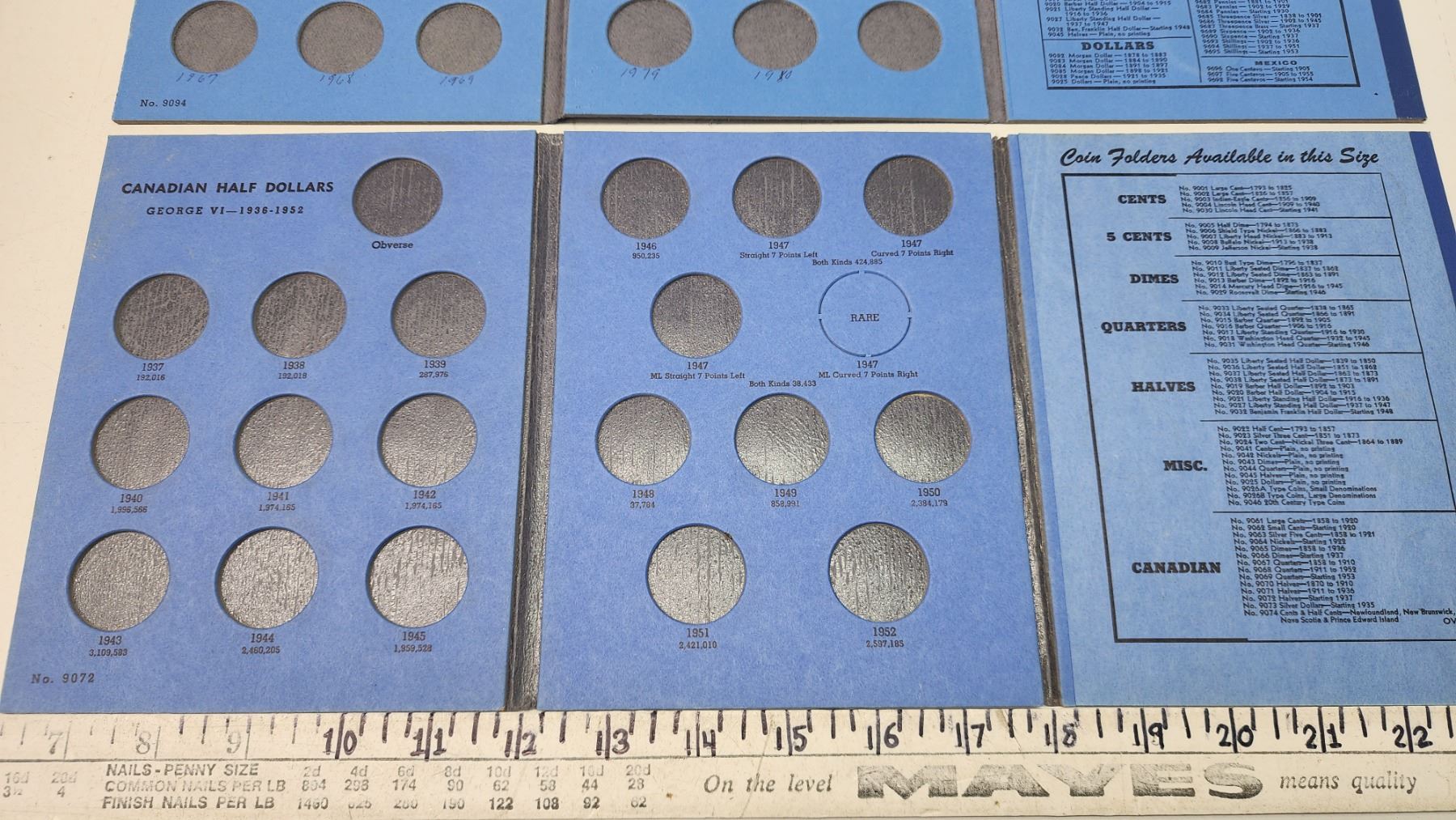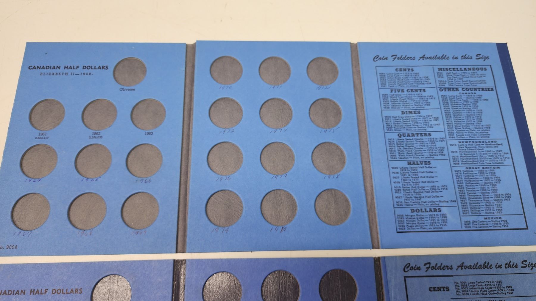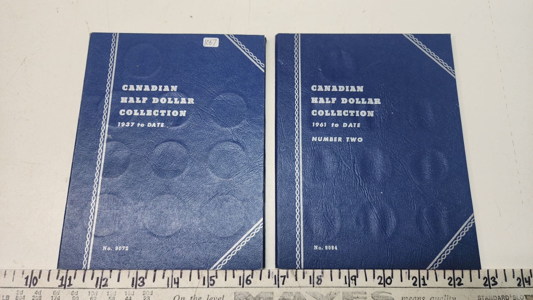 Empty Canadian Half Dollar Collection folders. Lot of 2 Whitman folders for Canadian 50 Cents dated 1937 – 1960 and 1961 – Date. Used.