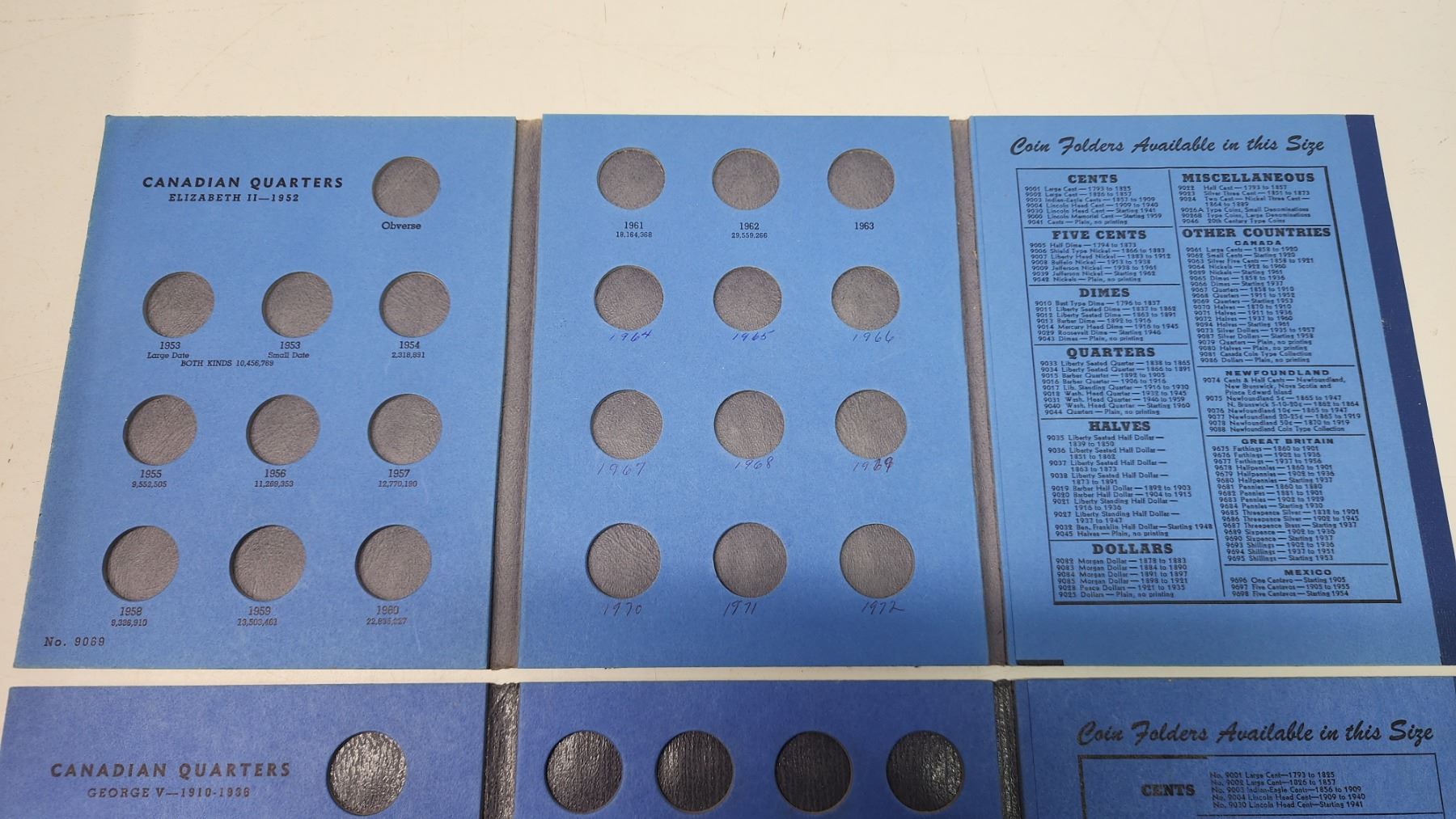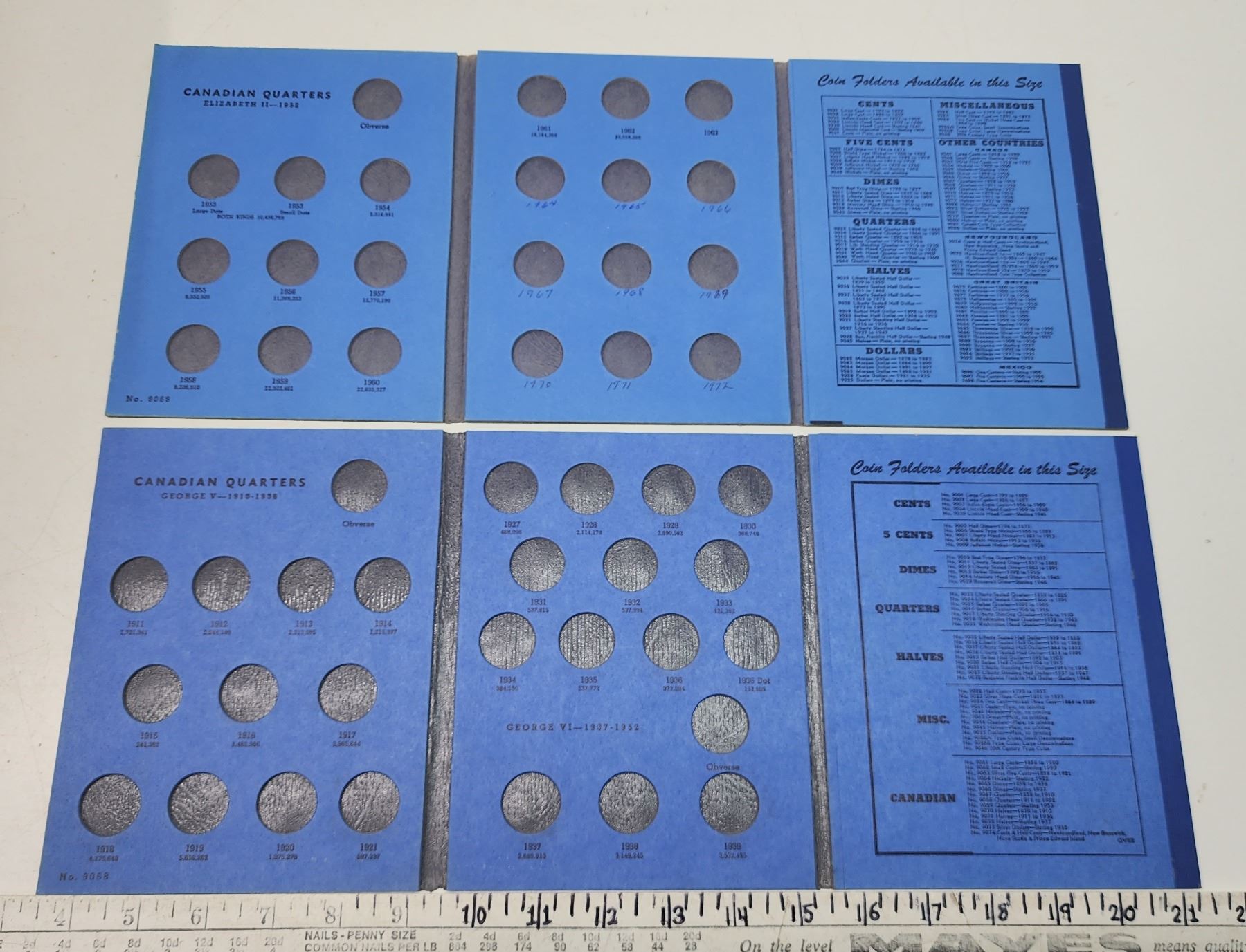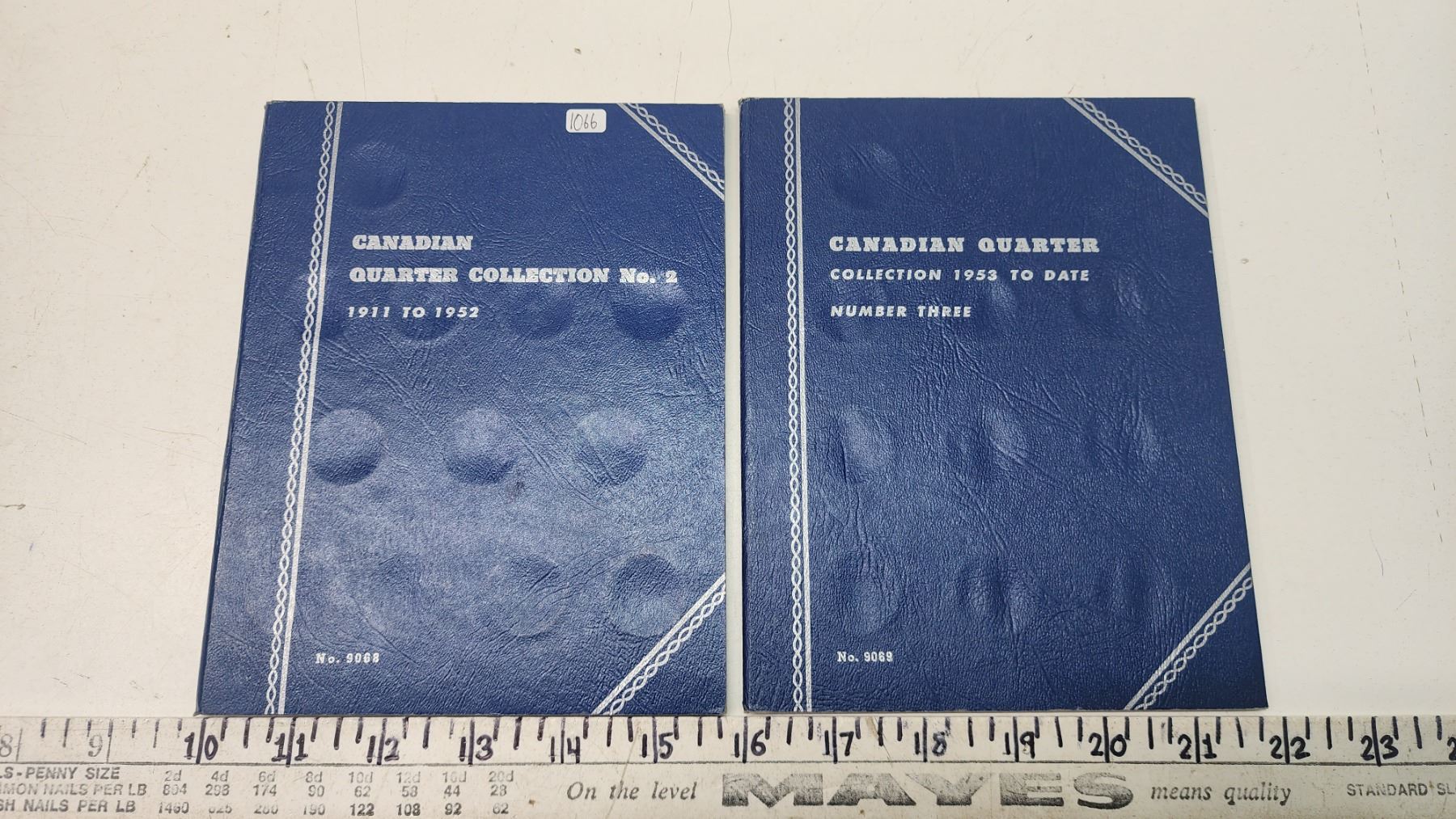 Empty Canadian Quarter Dollar Collection folders. Lot of 2 Whitman folders for Canadian 25 Cents 1911 – 1952 and 1953 – Date. Both Used.