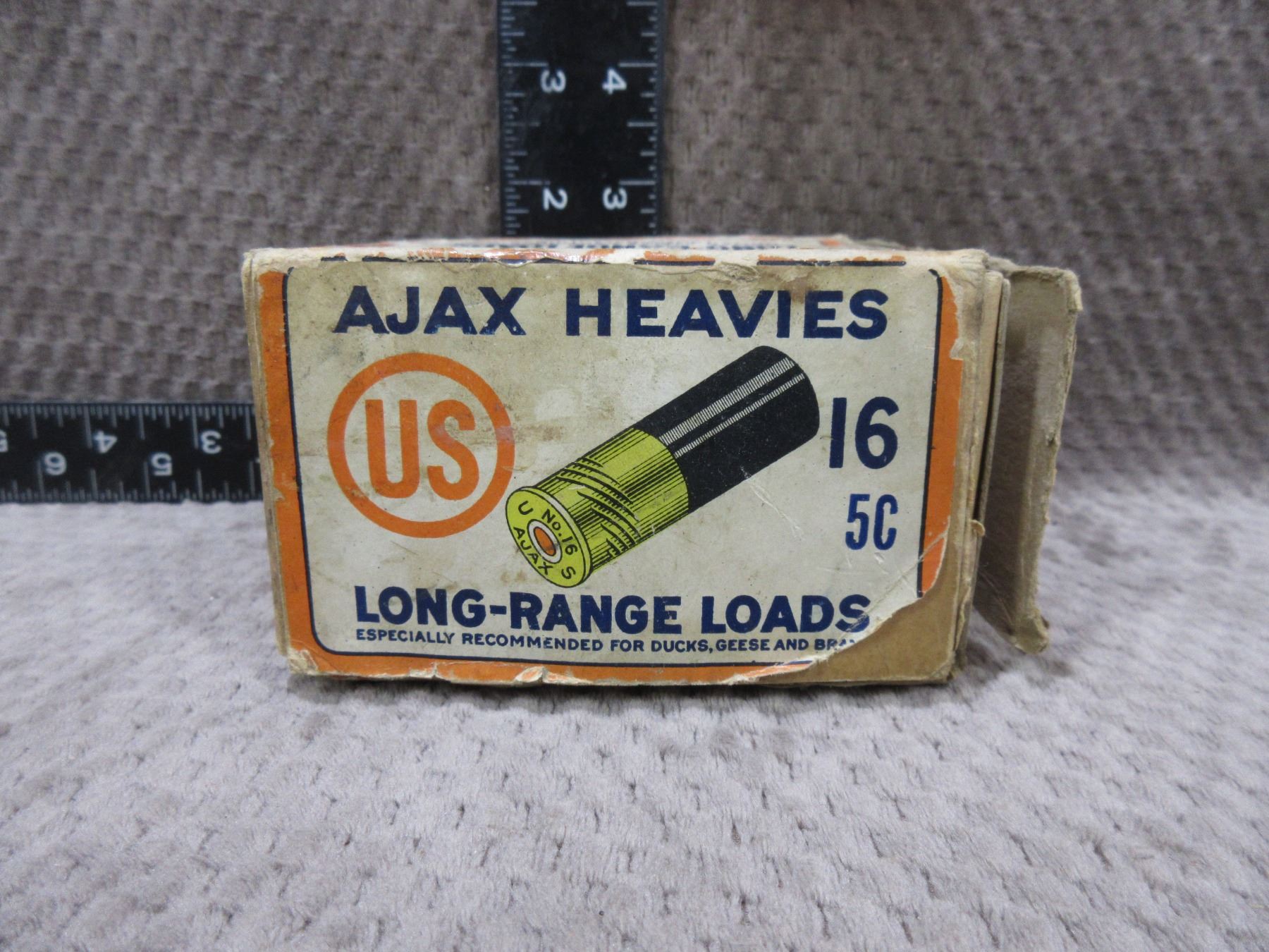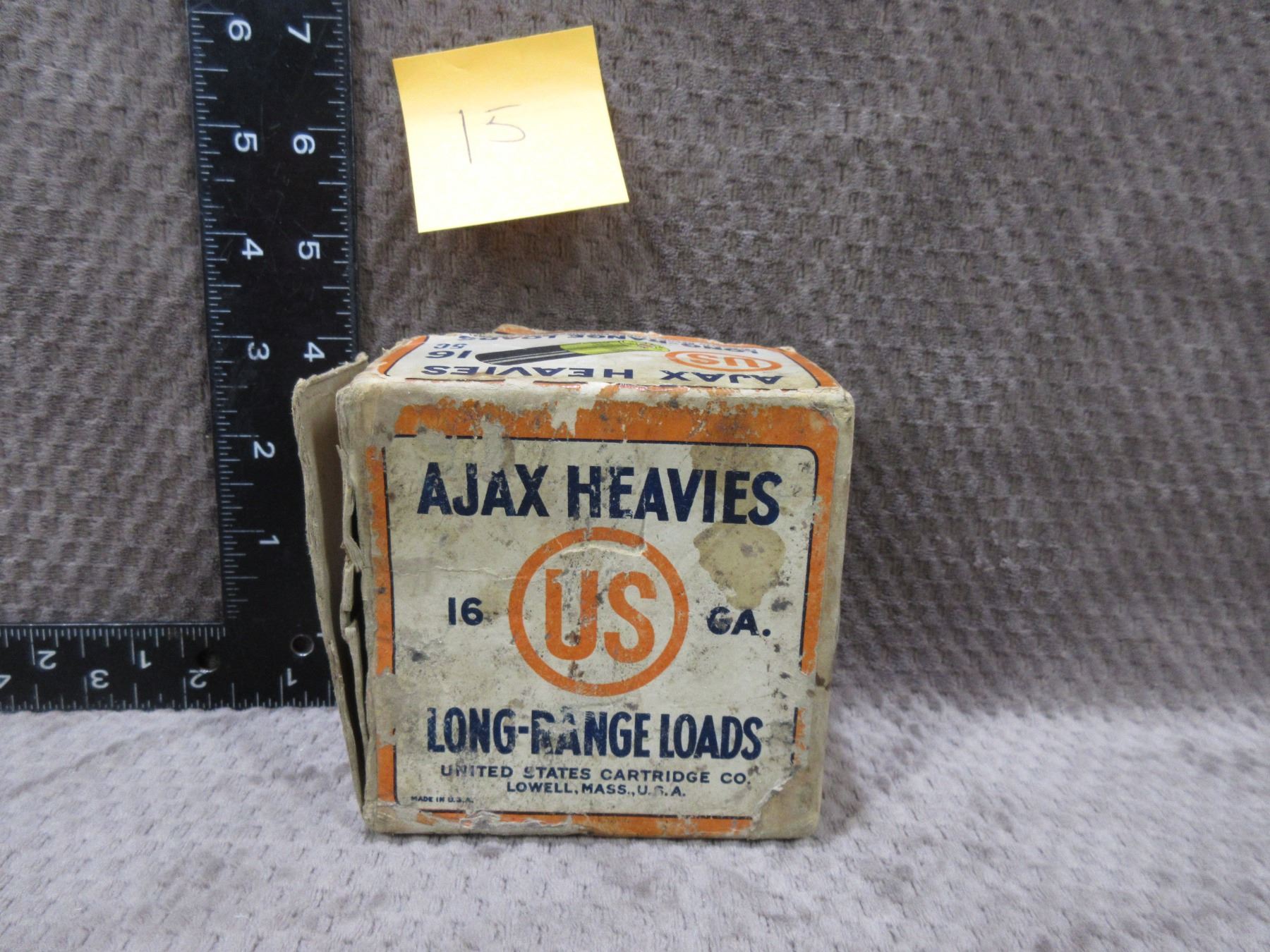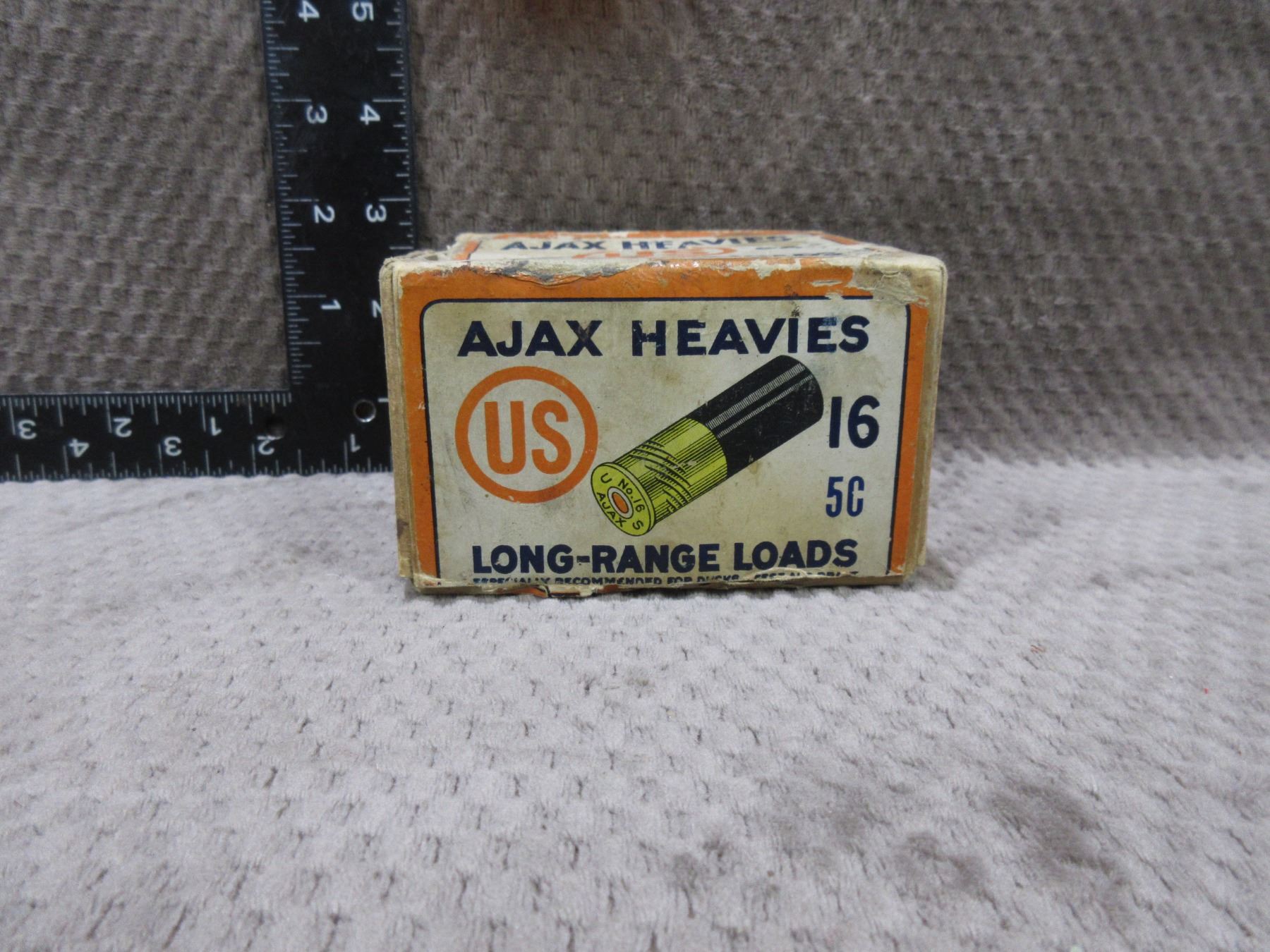 Empty Collector Ammo Box - US 16 Ga. Ajax Heavies - United States Cartridge Co. - Box is damaged