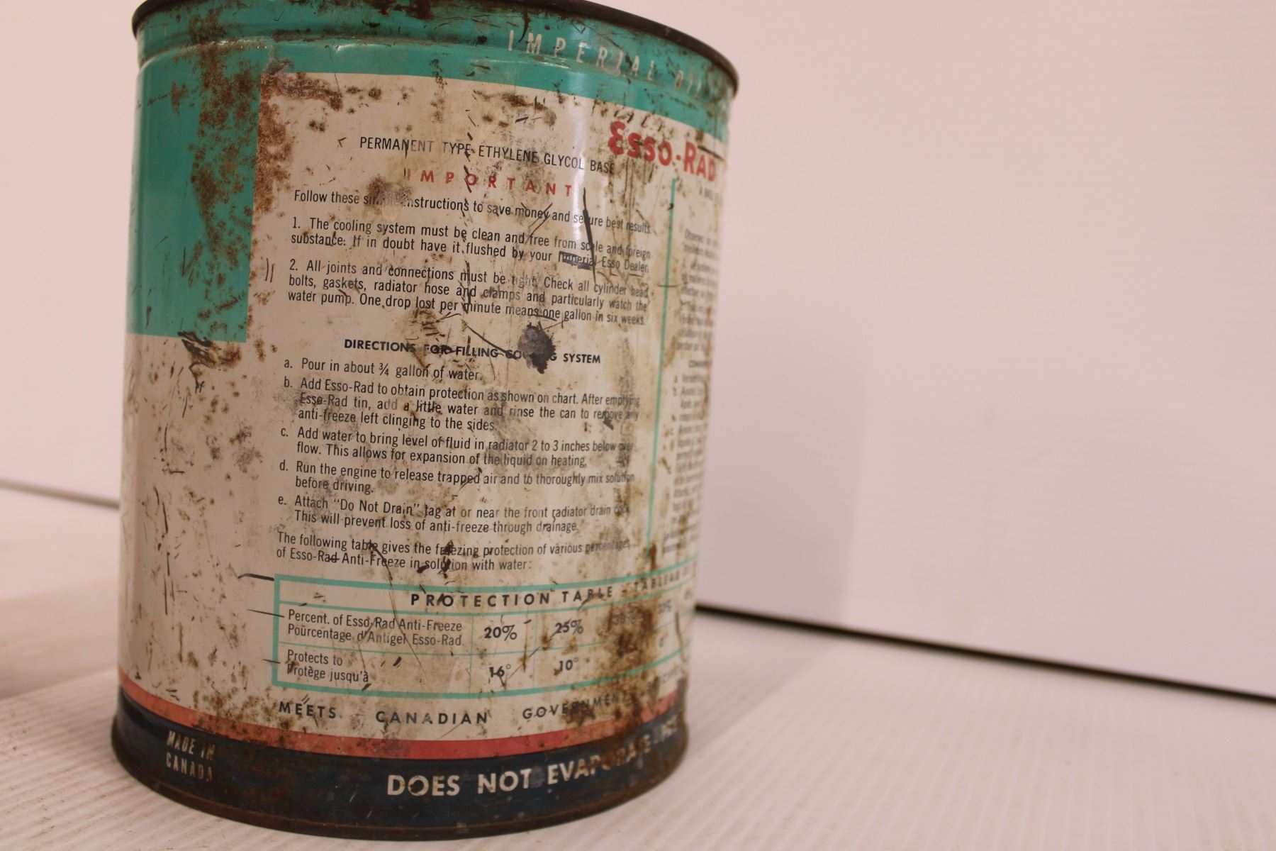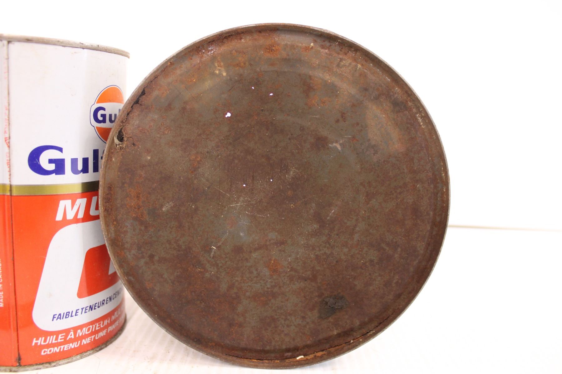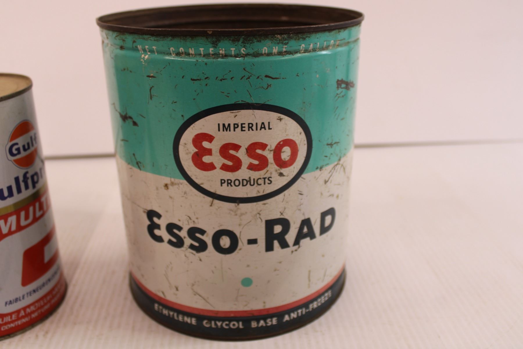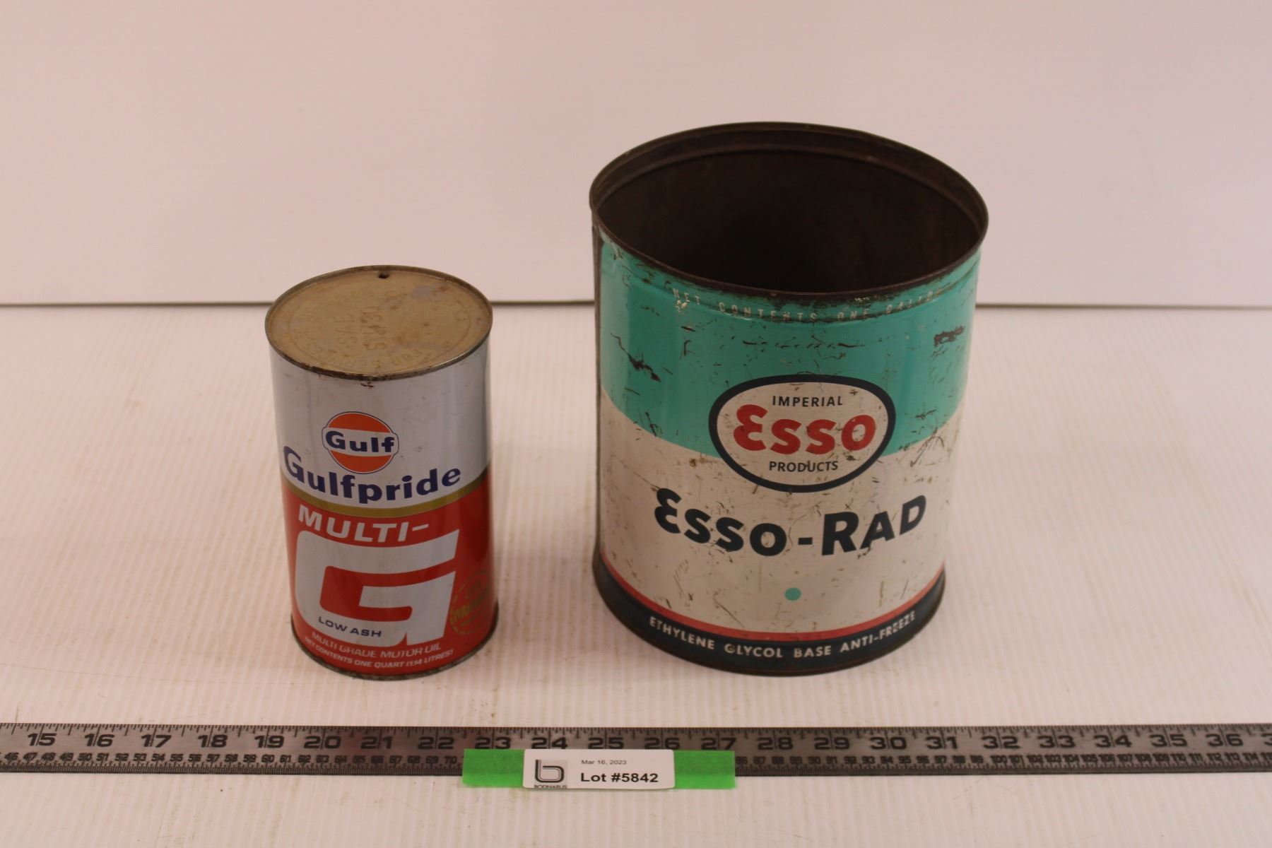 Empty Gulflube 1.14L Motor Oil Can + Rusted Empty Esso Anti-Freeze Can