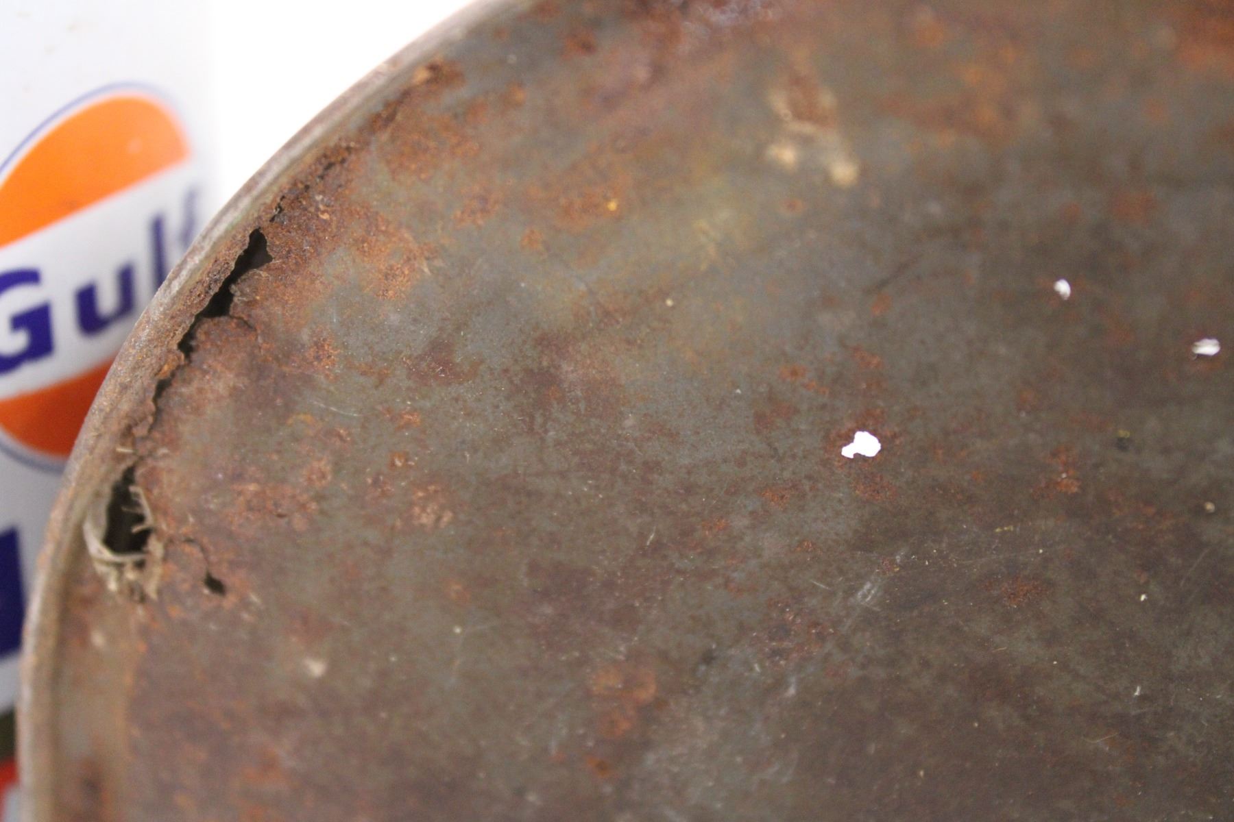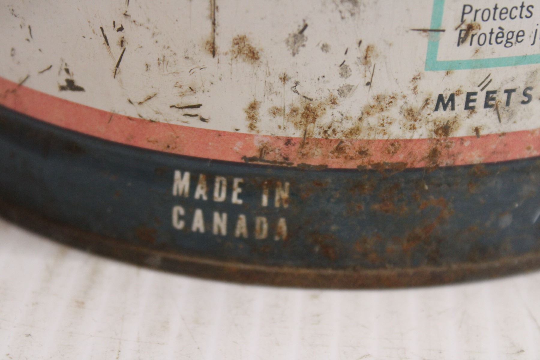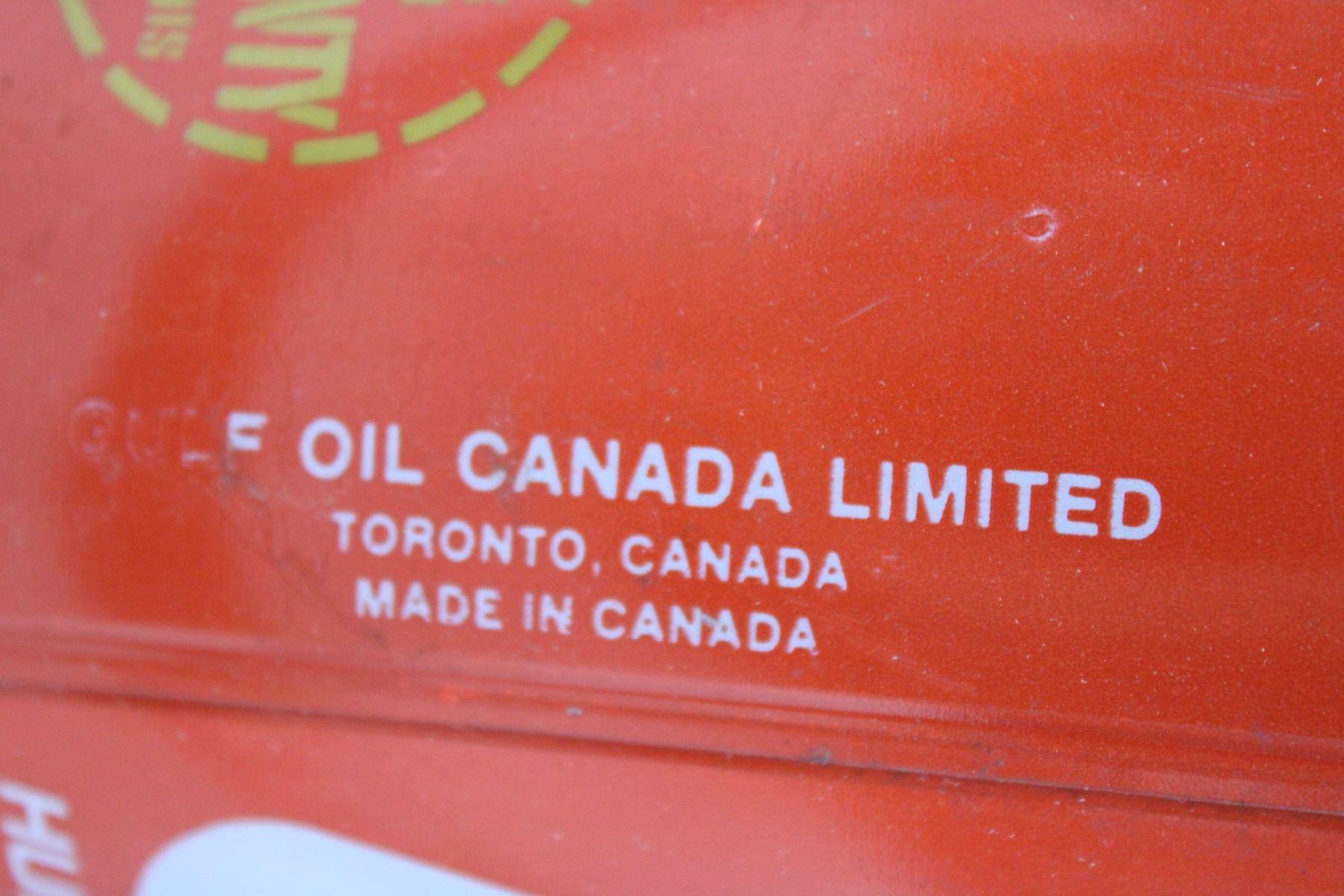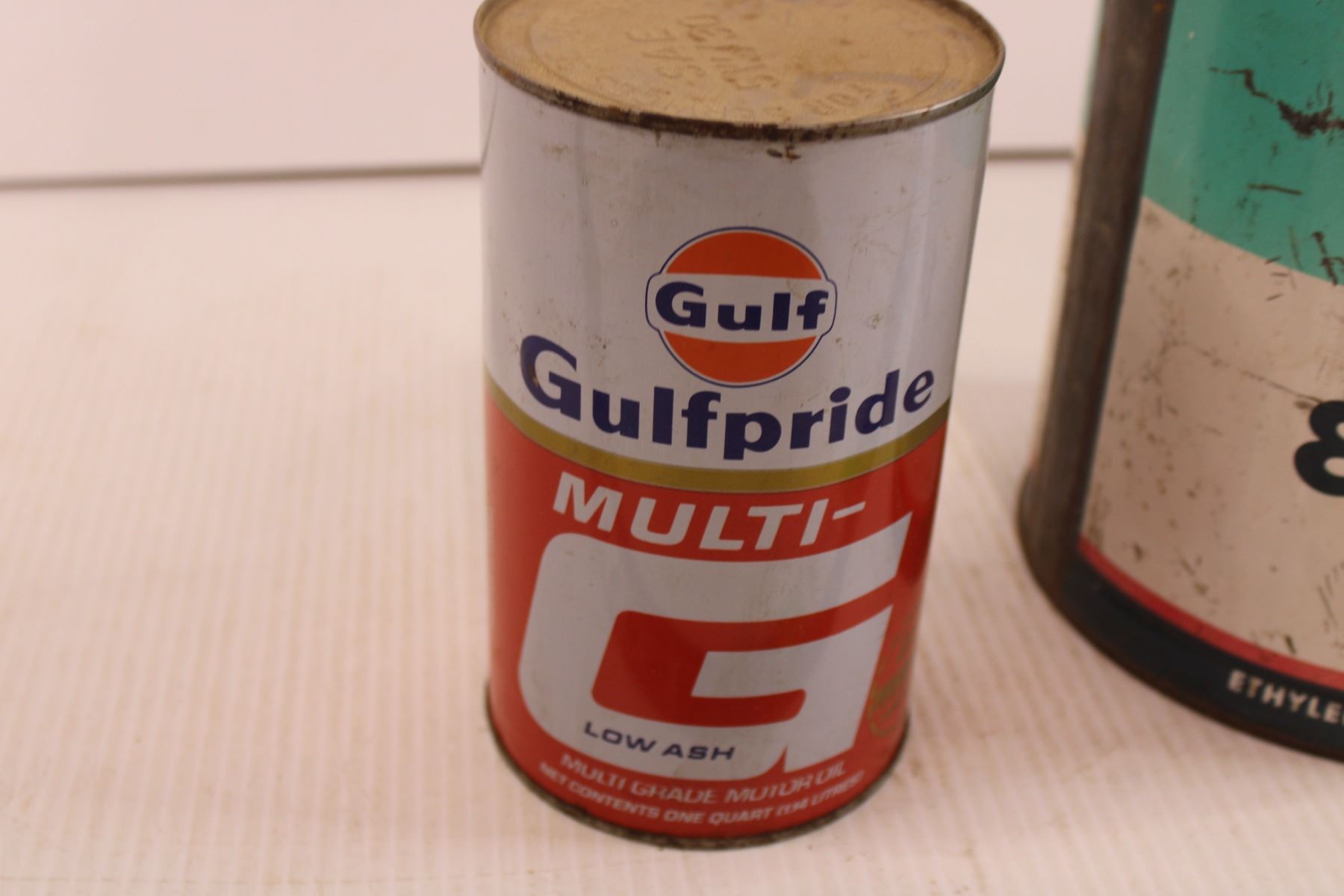 Empty Gulflube 1.14L Motor Oil Can + Rusted Empty Esso Anti-Freeze Can
