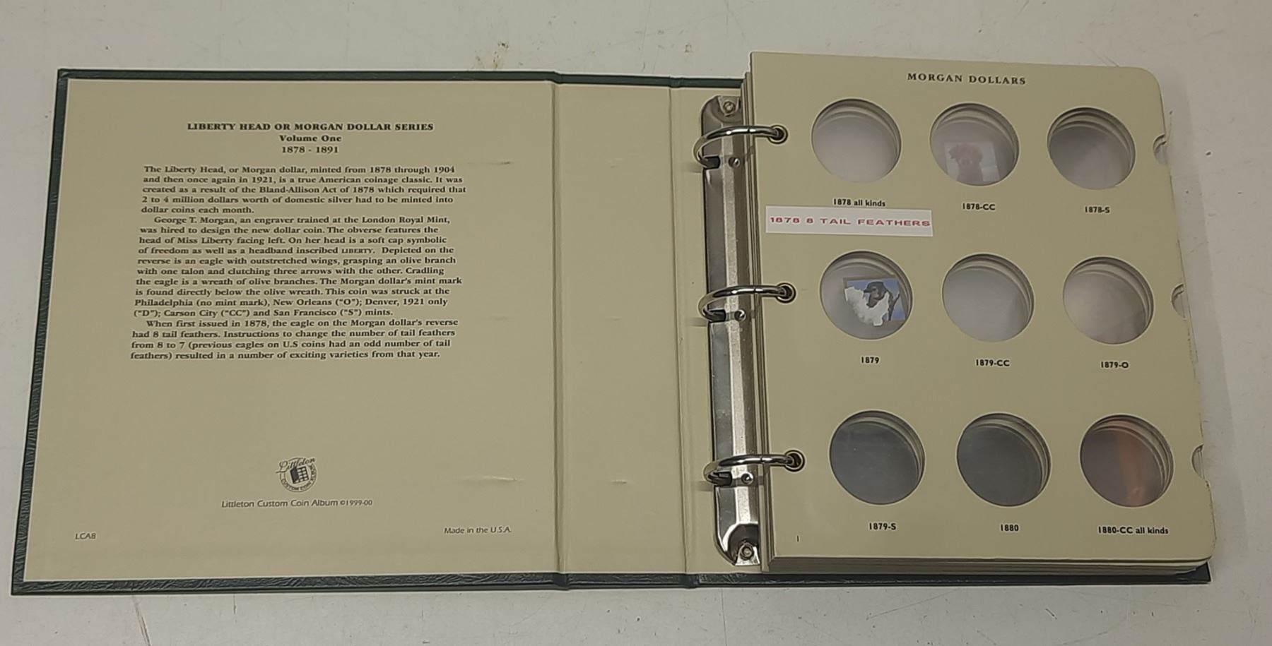 Empty Littleton Custom Coin Album for U.S. Morgan Silver Dollars 1878 – 1891. Archival Quality. Used.