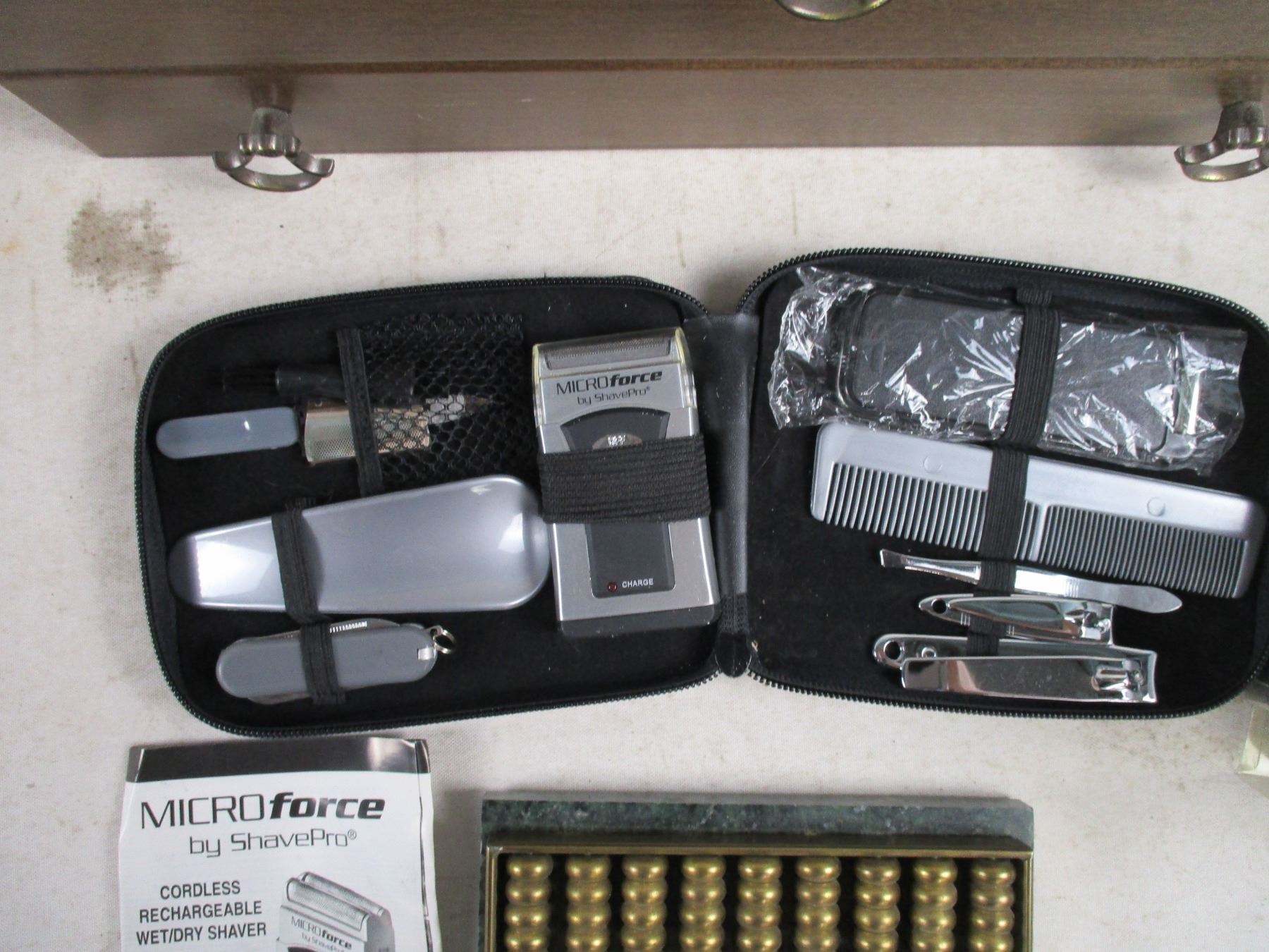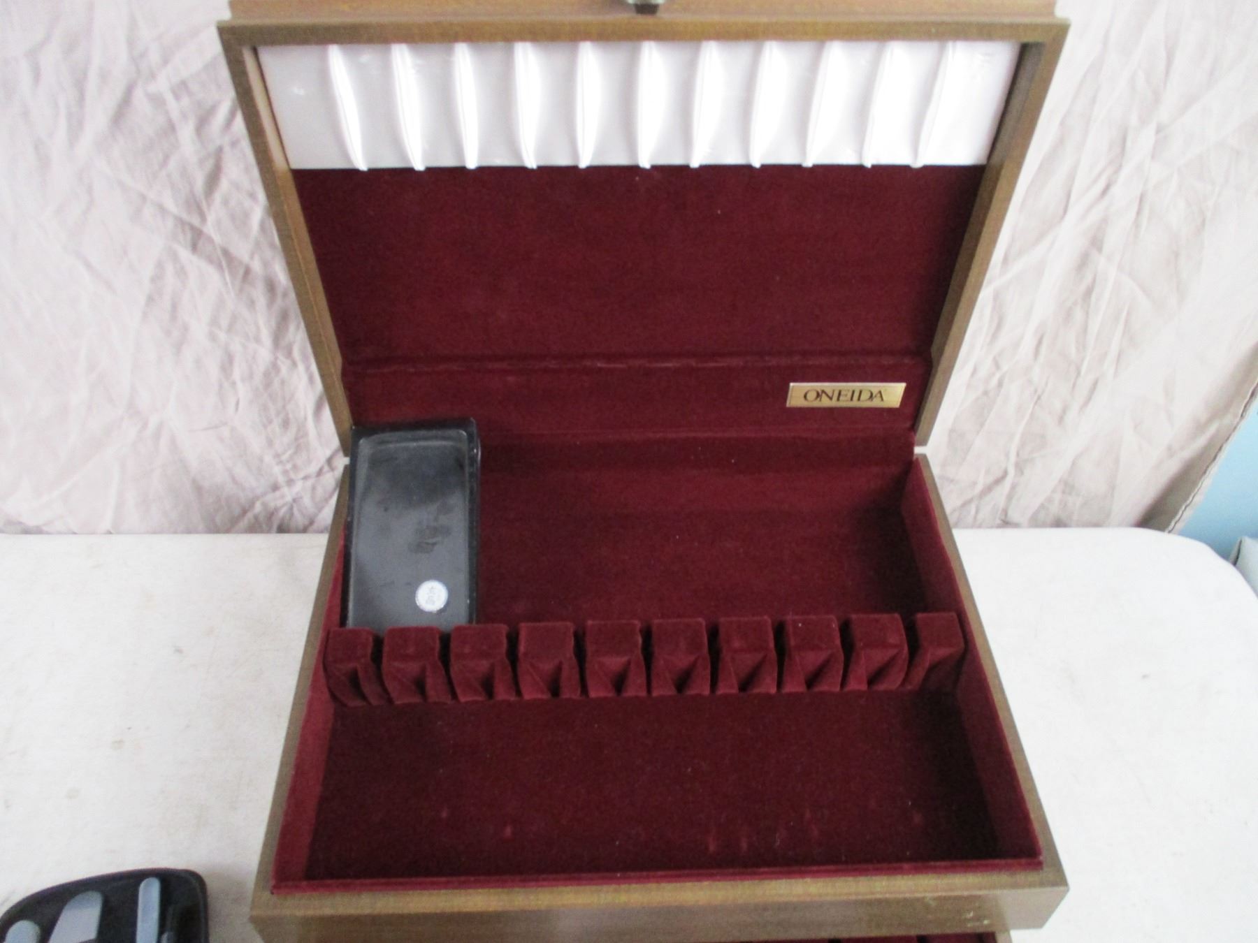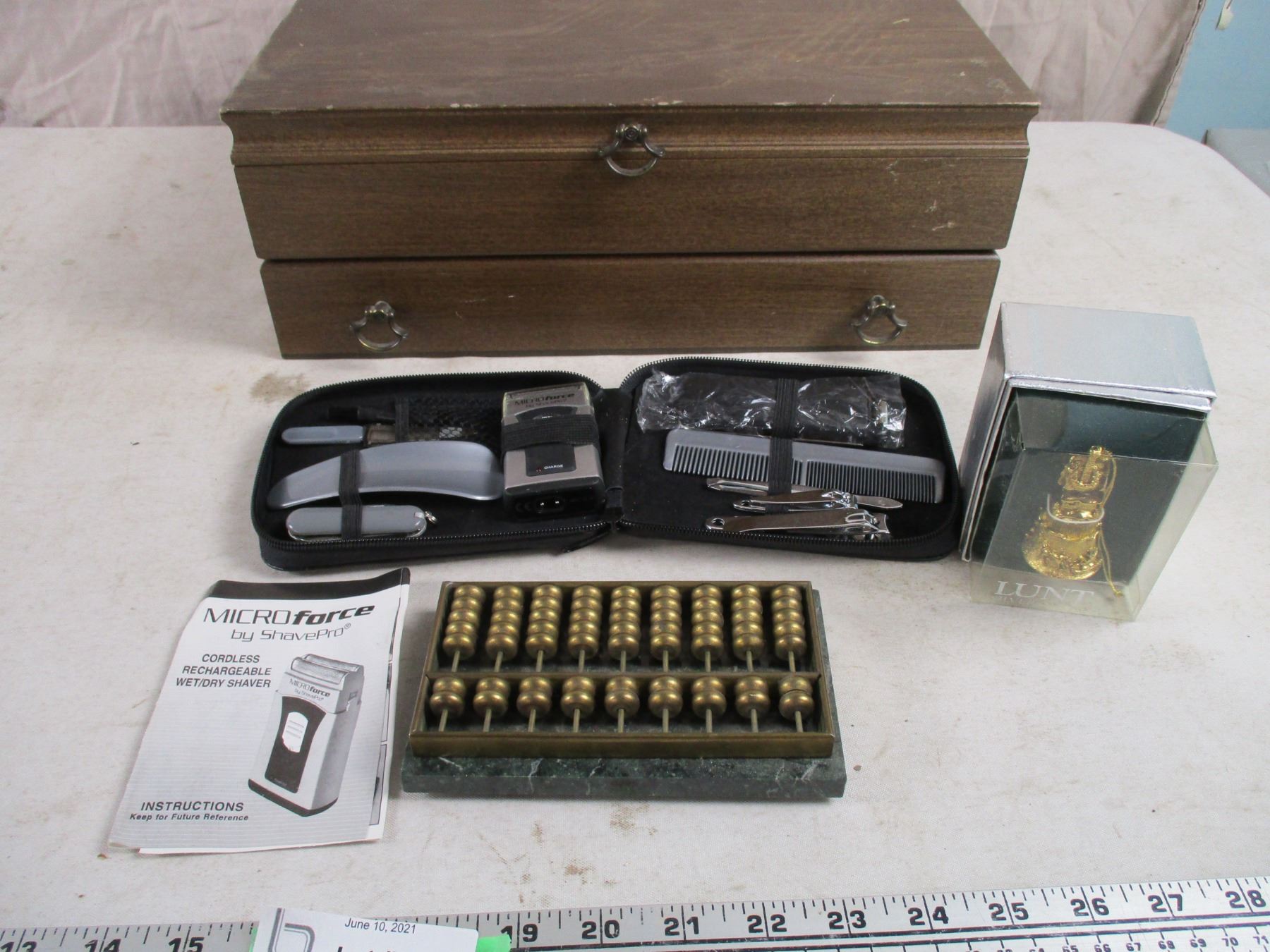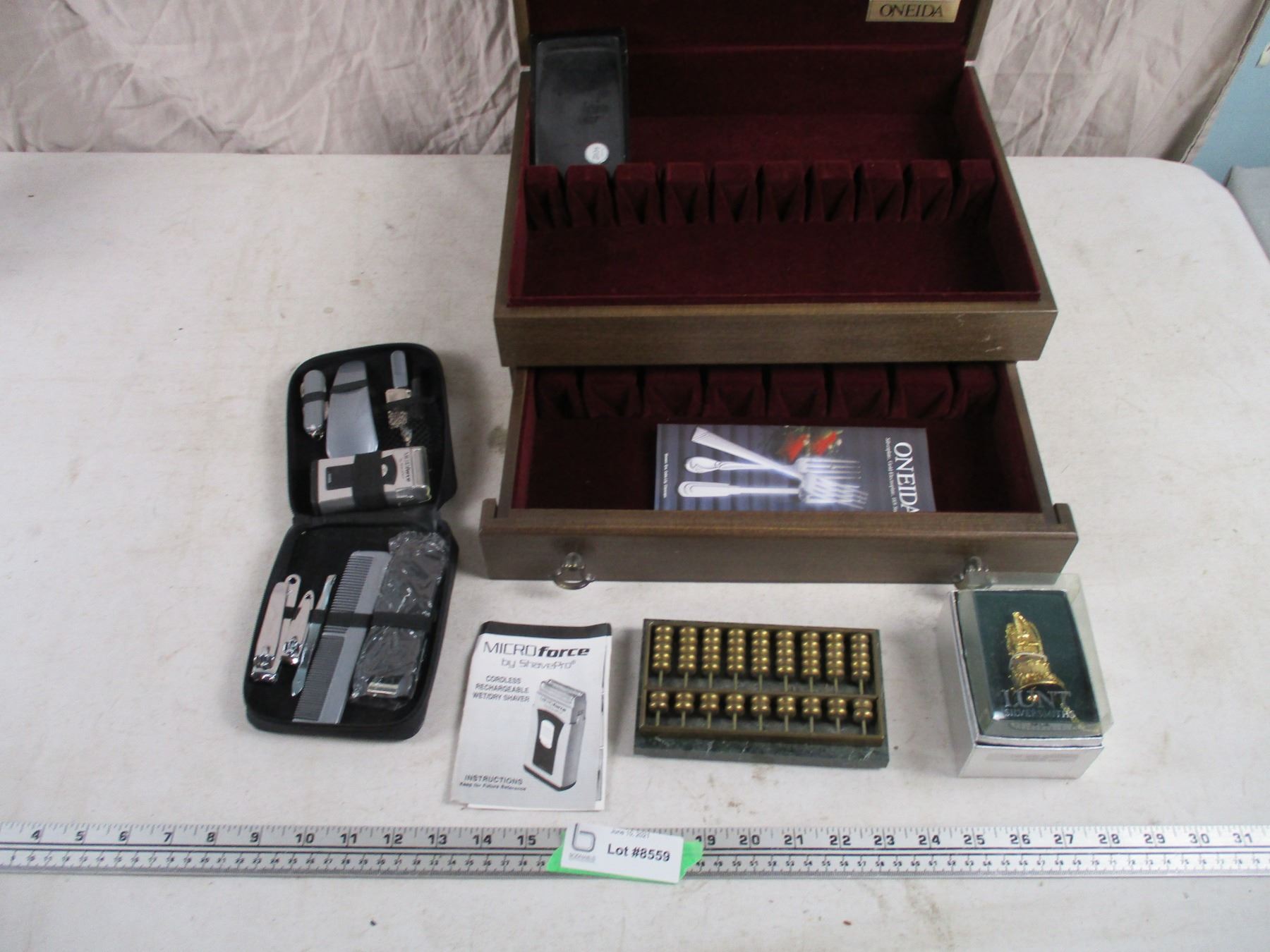 Empty Silverware Box, Brass Score Keeper + Shaver Kit + Misc