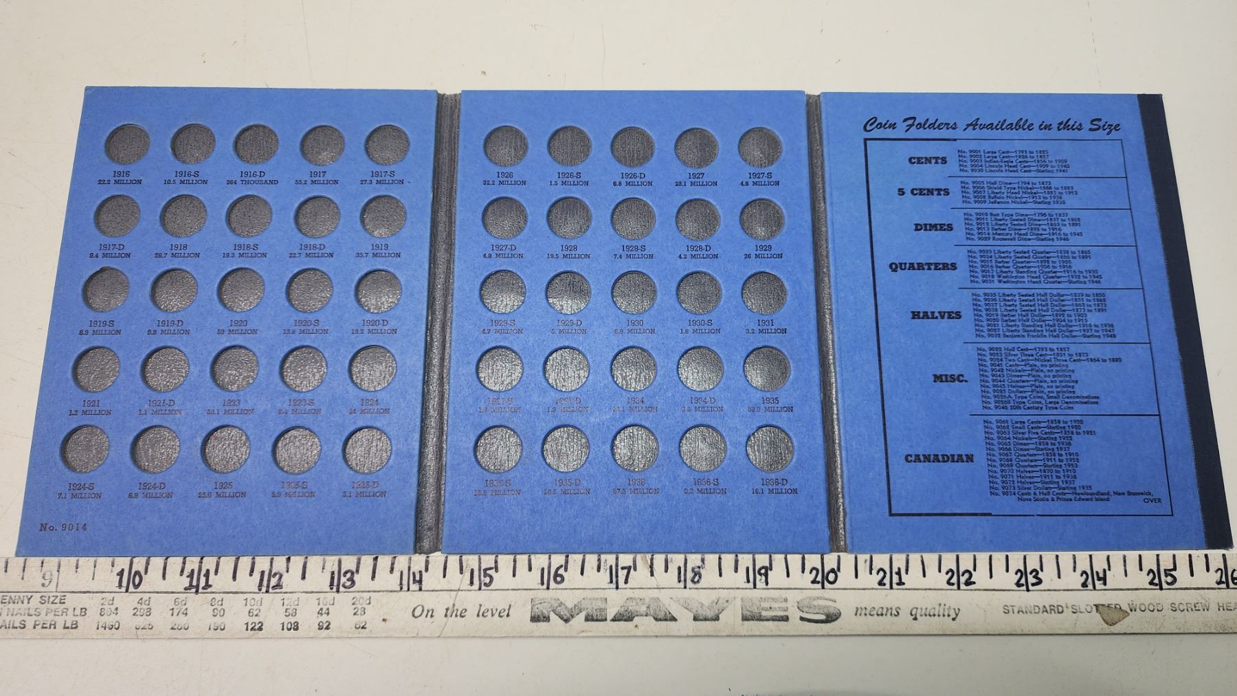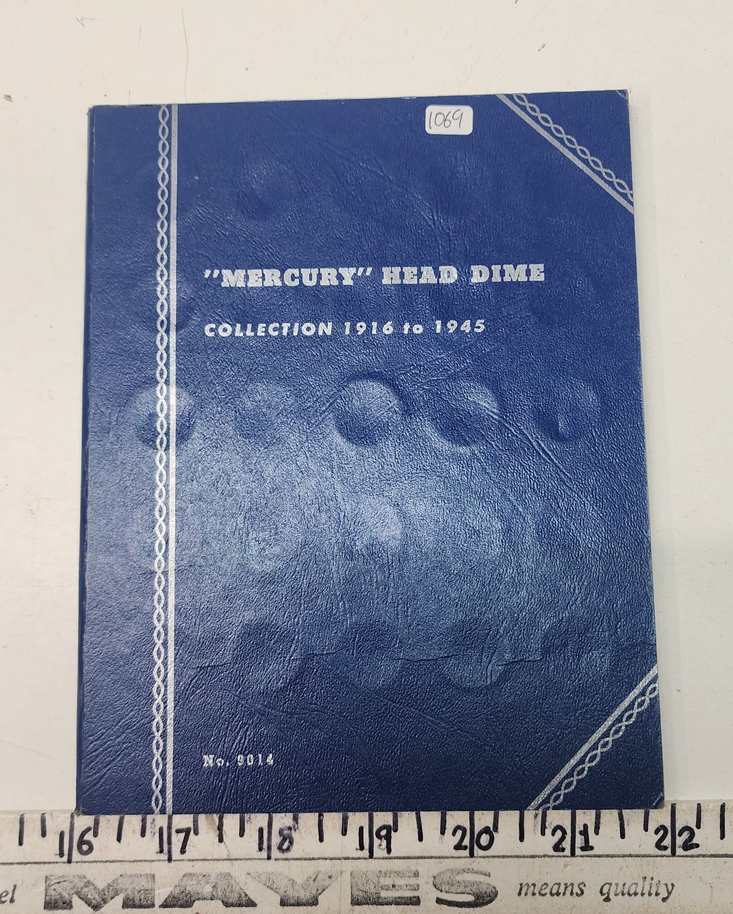 Empty U.S. Mercury Head Dime Collection folder. Whitman folder for U.S. Mercury Dimes dated 1916 to 1945. Used.